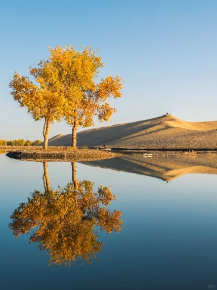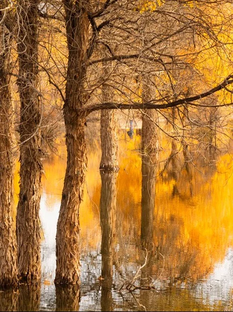 🌸胡杨灿烂如晚霞/蓝湖澄澈映秋光
