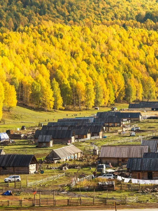 禾木村🏡:宛如童话世界中的村落,宁静而和谐。