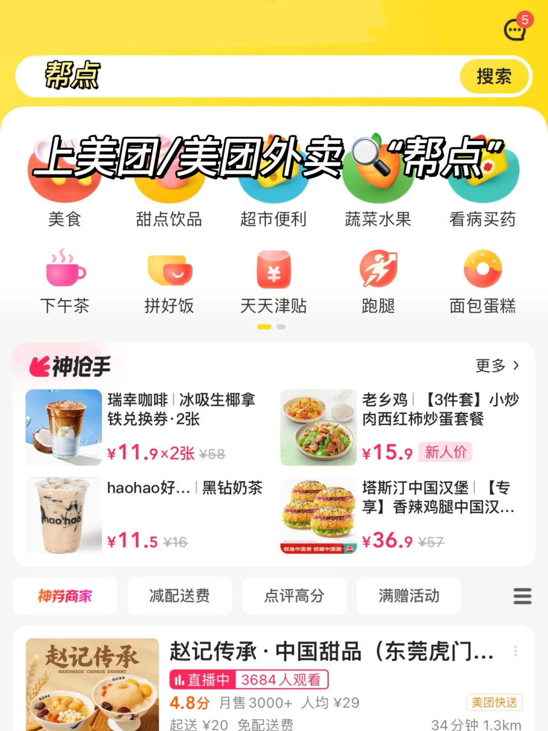 上美团/美团外卖搜索“帮点”!