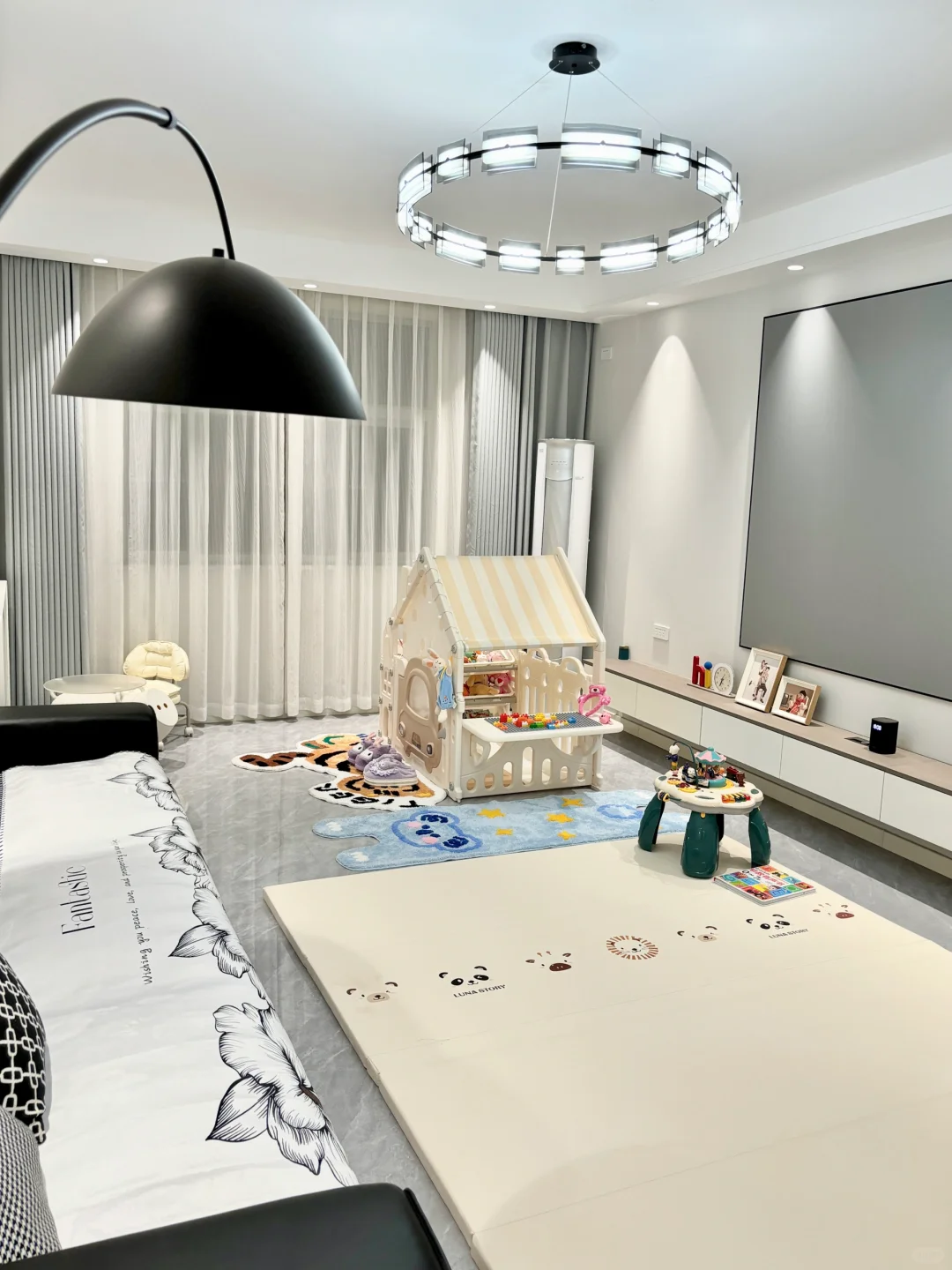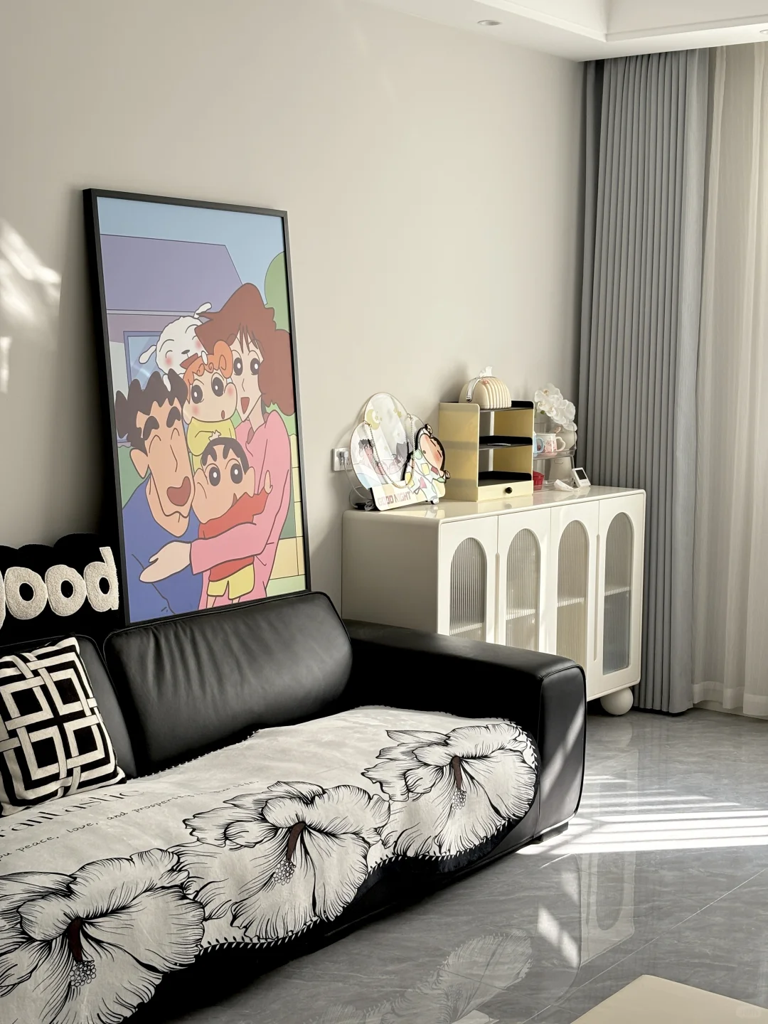 普通的人居住的家,不具备每时每刻观赏性 家是卸下疲惫可以无限放松的地方 在这里不受拘束,可以随意折腾 有厨具堆满的厨房,有玩具堆满的客厅 虽然没有网感,但充斥着温馨的生活气息 秋意渐浓,已经进入皮沙发开始冰屁股的季节 给我们家3.5m的大黑牛也安排上新衣了 2.8m*0.9m的芙绒沙发垫尺寸刚好 细腻的短绒软软的很贴心,背面防滑颗粒,铺上去服帖不会乱跑,黑白设计随便搭都不会出错,还解决了皮沙发冰屁股的烦恼,它好我也好,双赢 这样普通的家,让我们有了真正的归属感,一起晒晒充满生活感烟火气的家吧🏠