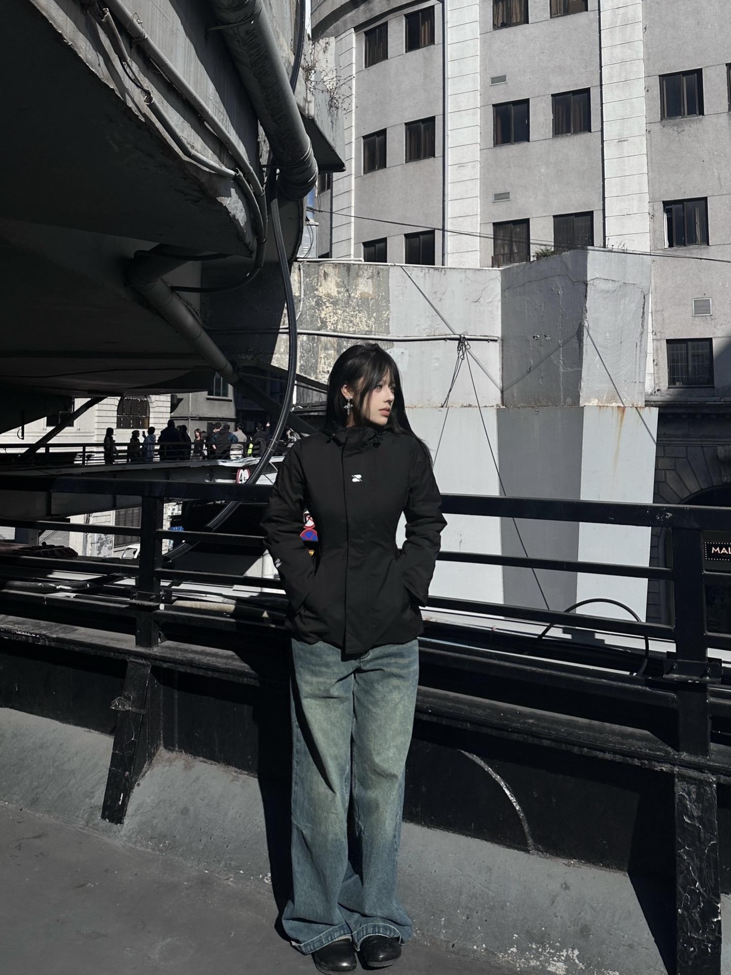 穿羽绒服喽。