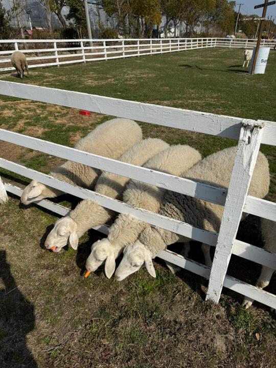 一群毛茸茸的小家伙"咩咩"叫着围上来,抢着要吃我的胡萝卜哈哈哈。