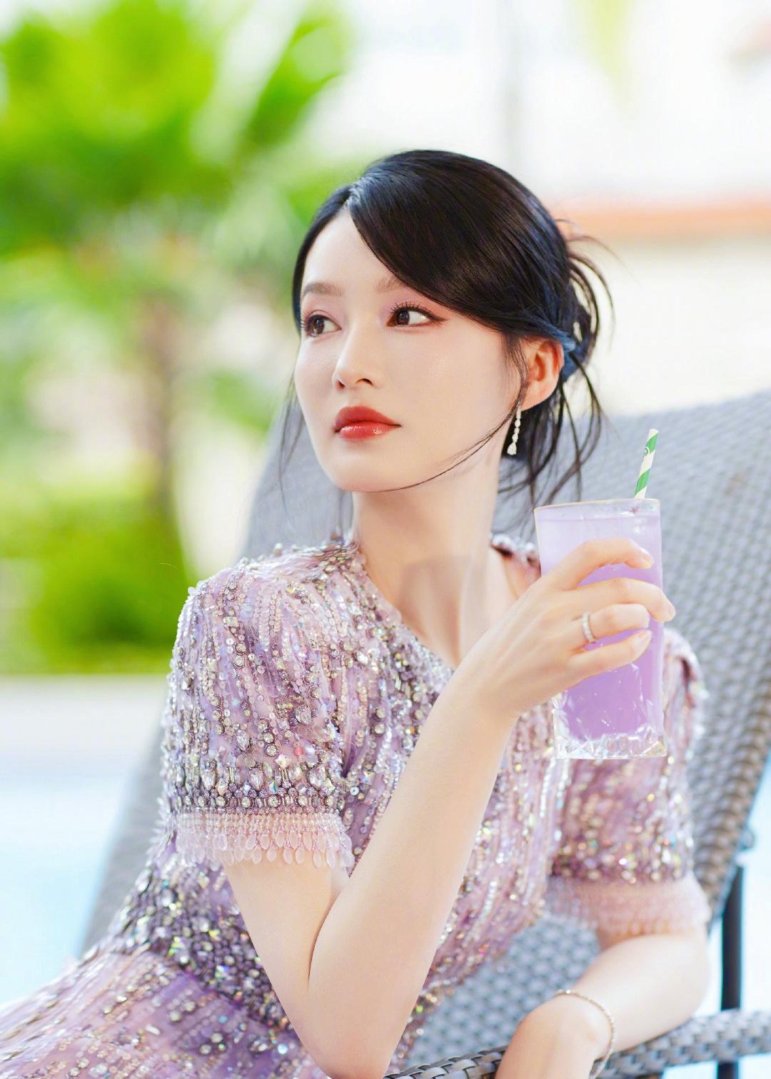刘亦菲把死亡玫粉穿出了定制款的感觉,这种颜色普通人穿上分分钟黑三度,她居然能穿出