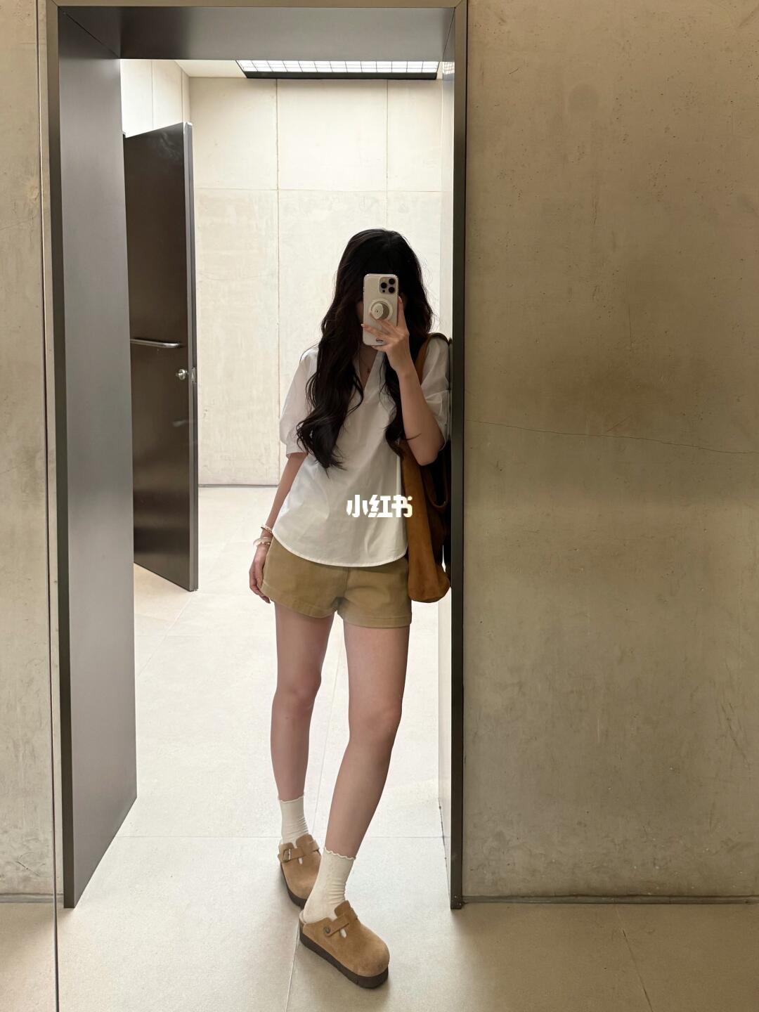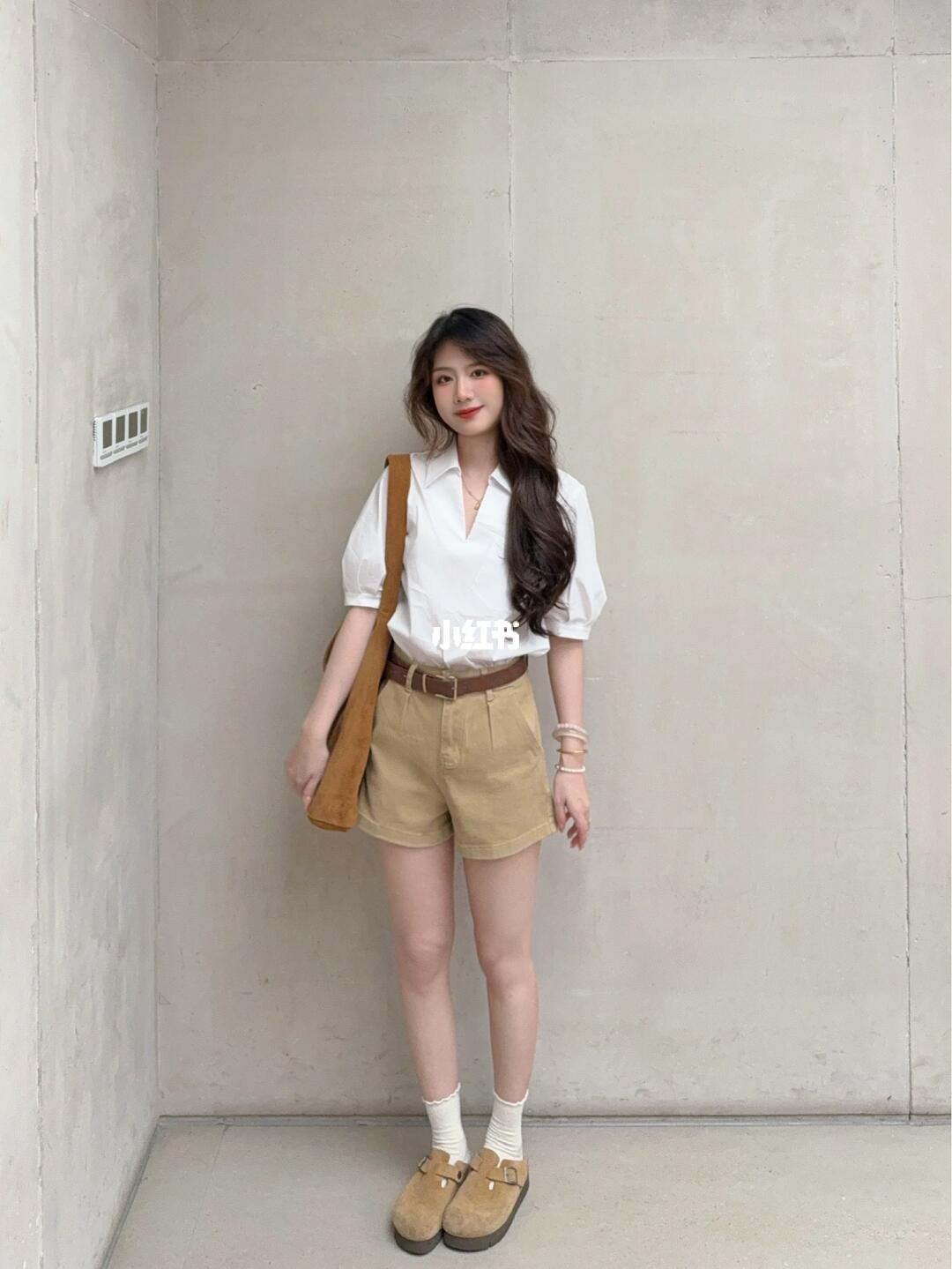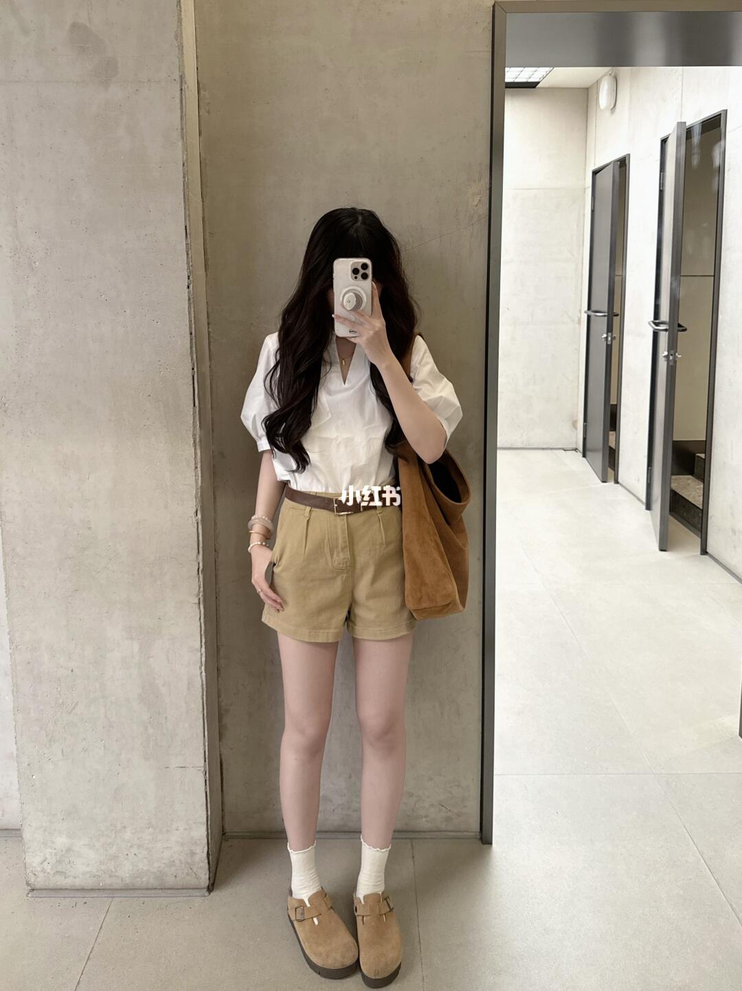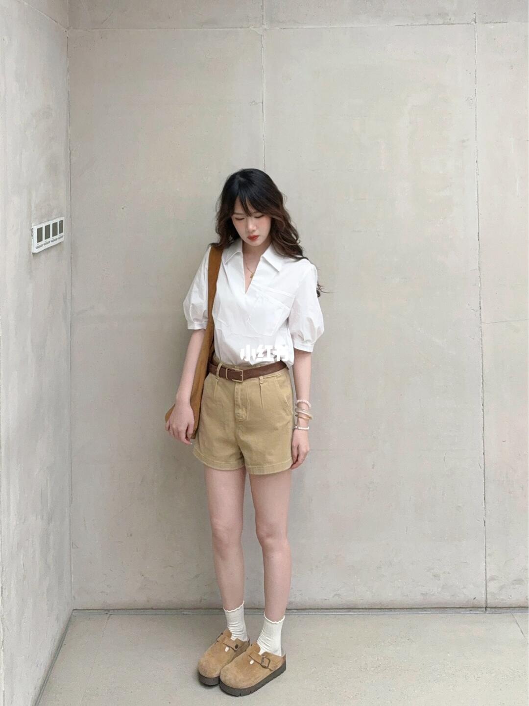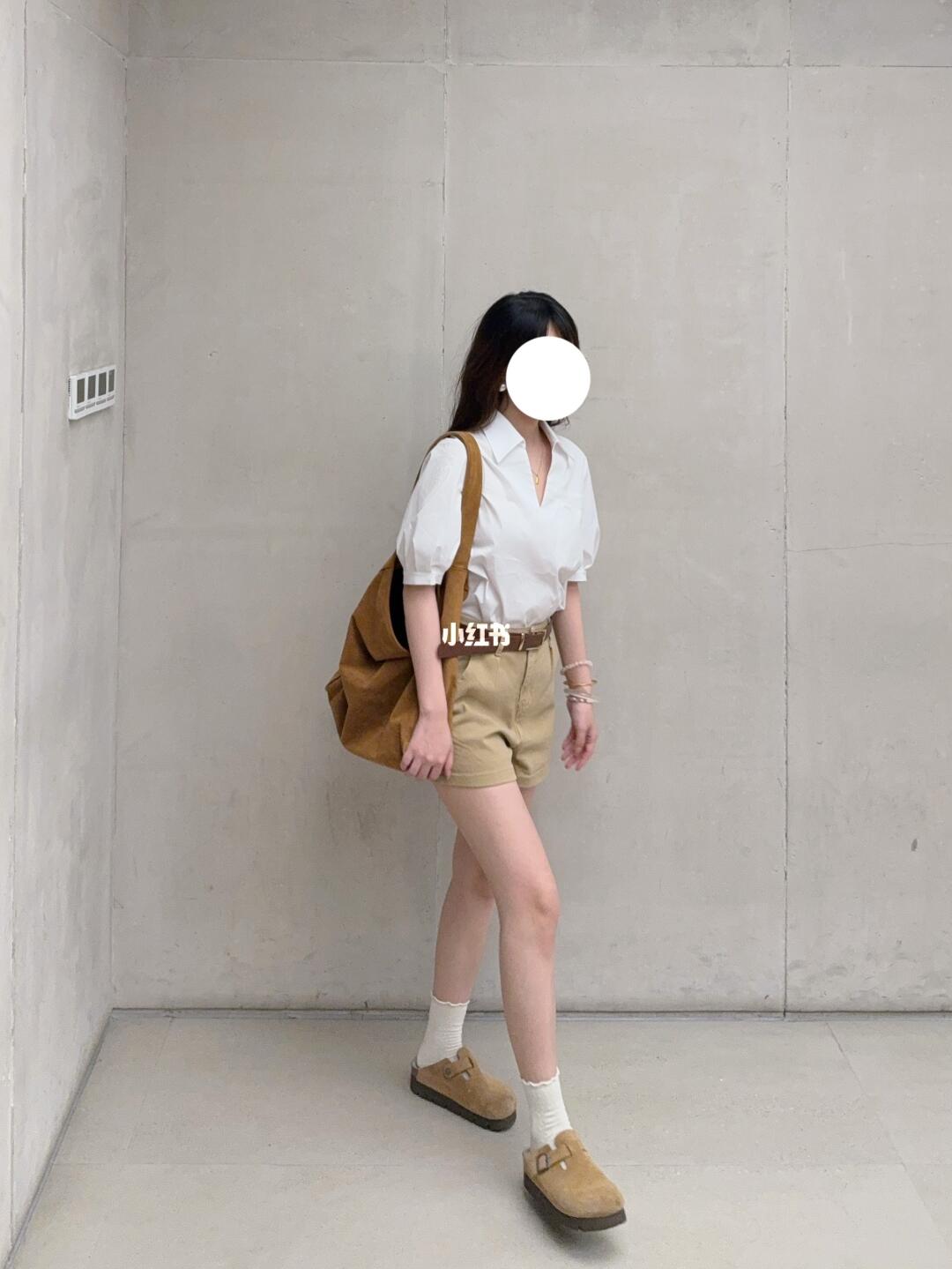 👉🏻白衬衫➕卡其色/黑色/牛仔蓝/短裤(中裤)➕勃肯或者乐福鞋➕大一点的包包(衬衫塞进裤子里比较利落)