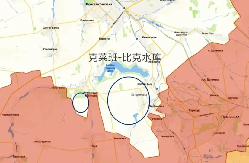 顿河康斯坦丁诺夫卡方向,战局对乌克兰已经糜烂不堪。 俄军从两翼向克莱班-比克水库方向攻击,目的就是包围克莱班-比克水库以南的乌军,现在的克莱班-比克水库已经成为俄军的天然助力。 乌军现在的选择不是撤退,而是继续往里面填人。 乌军的选择有些无奈,看看地图,克莱班-比克水库以南面积很大,这要是轻易放弃,俄军迅速就从南面抵达顿河康斯坦丁诺夫卡的南郊了。 但是乌军继续往这边填人,搞不好是会被俄军完全封死在克莱班-比克水库以南的。