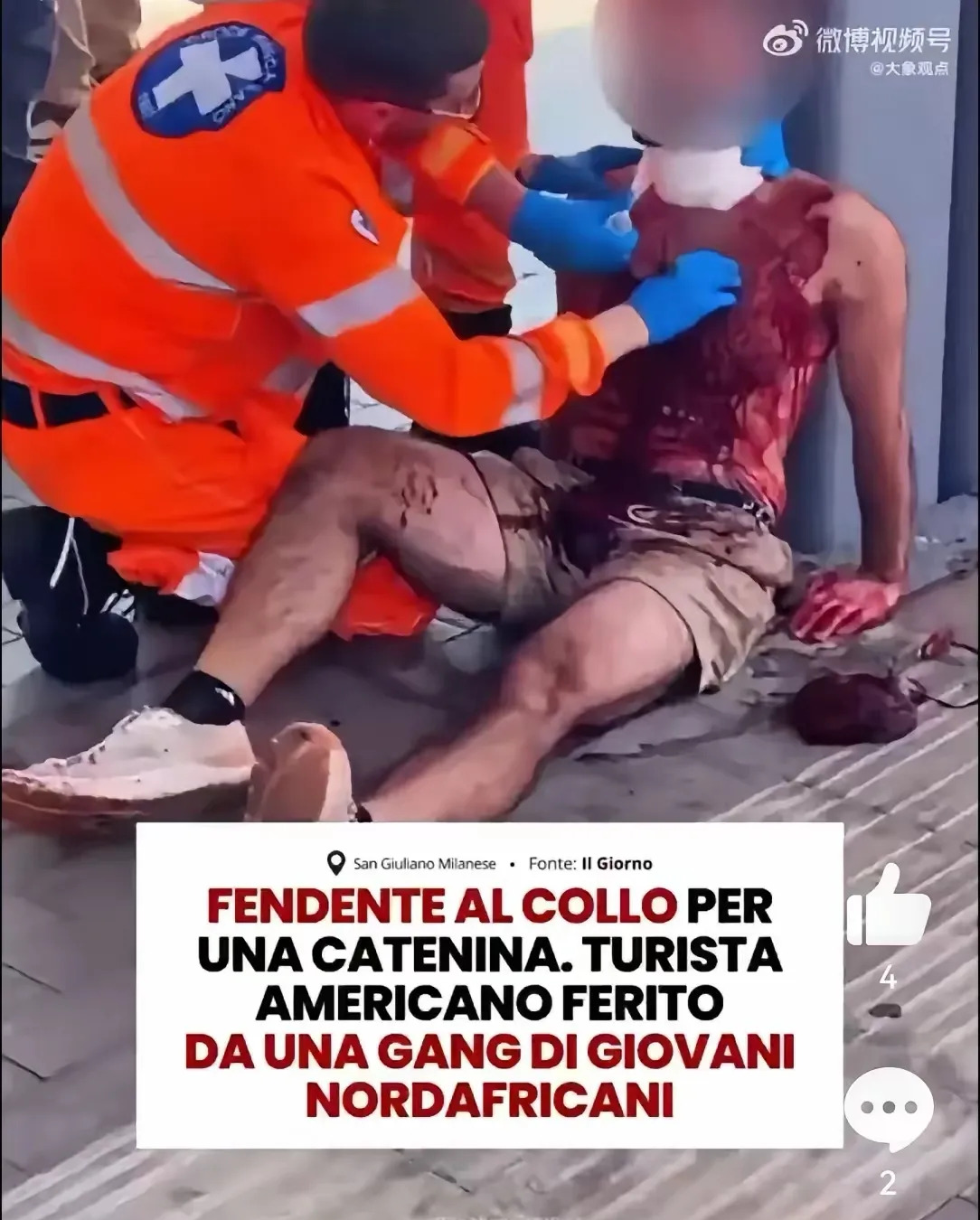 太可怕了!谁能想到,只是戴了条金项链,竟然在意大利米兰火车站被人割喉!三个陌生男人,拿着刀,对着脖子就下狠手,抢走项链就跑,这简直就是电影里的情节,现在竟然真实发生了!这老外当时肯定吓坏了,对着救护人员喊“我不想死”,想想都让人毛骨悚然!
