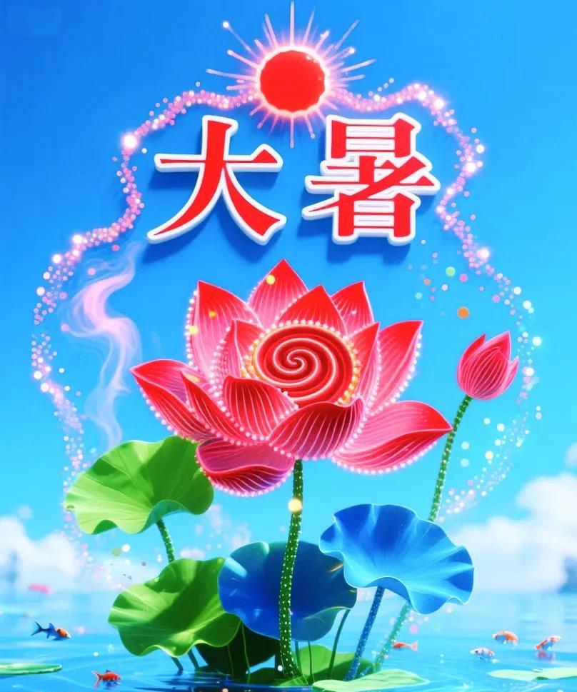 [心]大暑送福[心] [心][微风]炎夏盛景,大暑问安。烈阳高悬,暑气蒸腾,这是独属于大暑的炽热篇章。愿您在热浪里寻得清凉意,树荫下纳凉悠闲,晚风拂走燥热,把夏日的烦闷都吹散,每一天都过得畅快又舒坦。 [心][微风]身心皆畅,顺遂安康。大暑时节,别忘好好照顾自己。多饮温水润肠胃,适度纳凉养精神,让健康常伴身旁。愿您胃口常开,吃得香睡得好,活力满满对抗暑热,烦恼忧愁统统绕开,生活满是自在。 [心][微风]夏意悠悠,福运相伴。看莲花绽于碧水,听蝉鸣闹在枝头,大暑的美好藏在这些小景里。愿您被夏日温柔眷顾,所求皆如愿,所行皆坦途,把平凡日子过成诗,让幸福在暑天里肆意蔓延,岁岁皆安,时时喜乐 。