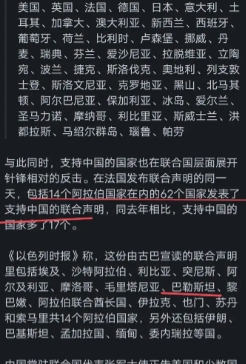 总有人觉得以色列打巴勒斯坦,是给中国出气,理由是我国边境地区总有极端组织搞事情。 但问题是,以色列才是参与煽动新疆棉事件,给东突组织提供自己武器,顺便关爱中各的msl团体,还支持台独的“超级教友”。 反倒是包括巴勒斯坦、沙特阿拉伯、阿联酋在内的一系列阿拉伯国家和组织在新疆棉和东突问题上力挺我国,沙特甚至还动用自己在msl世界的影响力,把在中国活跃的msl极端团体给开除教籍了。中国世俗化程度很高,不理解这个有什么用,但是对于那些宗教入脑的极端组织来说这就叫“绝罚”,是最高级别的惩罚之一。 啊,抱歉,我忘了有些以色列支持者只会使用“共享大脑”念一样的文案,比如“刚从以色列回来”之类的,根本不具备独立思考能力。