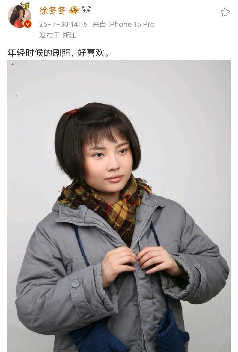 徐冬冬发年轻时候的剧照,与现在风格迥异 7月30日下午,徐冬冬在社交媒体发文,晒