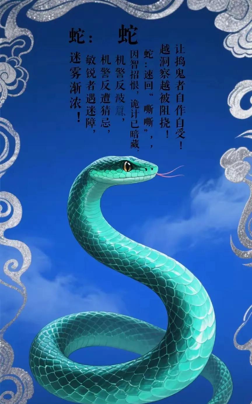 生肖蛇:近期可要提升洞察能力哟! 《鬼谷子》提到“事之危也,圣人知之,独保其身;因化说事,通达计谋,以识细微”。如今,生肖蛇的你,周围可能会出现隐藏的变数,一定要像潜伏的智者一样敏锐察觉,静心谋划,在保持沉稳的同时,巧妙运用谋略来打破困局。就像在迷雾里找到关键的线索,面对复杂的情况更要注意隐藏的机会,以静制动来确定突破点。