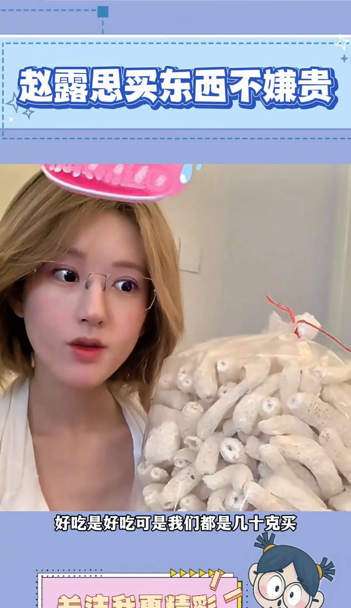 赵露思买东西不嫌贵。 赵露思买竹荪都是一大包的买,我们还真共情不了她。生活不仅过得好,因为喜欢吃,然后就买了一大袋子竹荪。好吃是好吃,可是我们都是几十克买。赵露思不缺钱还天天直播无病呻吟,不过她热度好高,天天霸占热榜占用公共资源。
