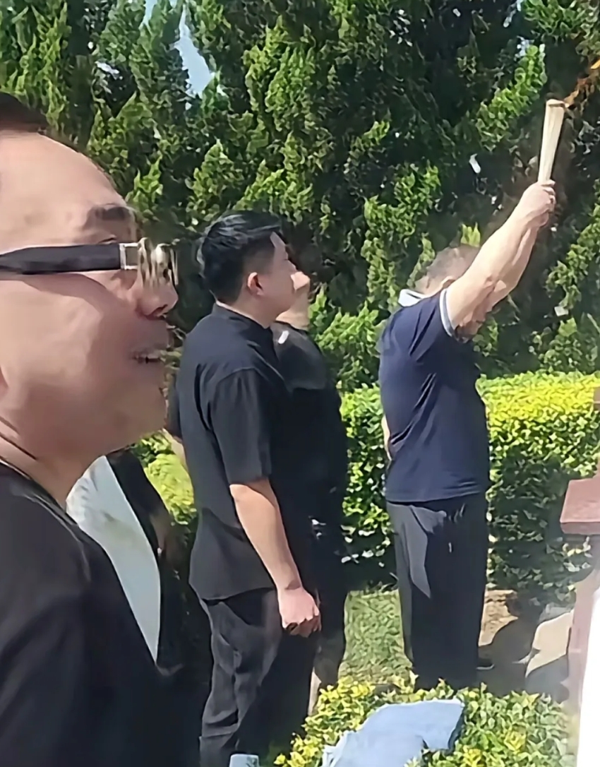 二是祭拜时的主持人,竟然直接站在了杨少华老爷子的墓碑下面。人家儿子们都是规规矩矩站在最下面那块草地上祭拜,这主持人倒好,一脚就踩在了这么敏感的地方,这做法怎么看,都显得有失妥当啊!