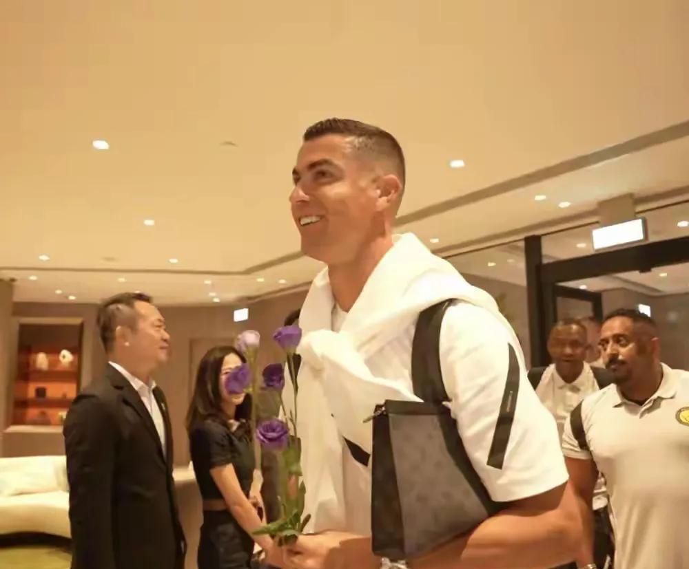 关于C罗抵达中国香港的两种极端报道,都很令人讨厌。 第一种,配图用图一,文案是: