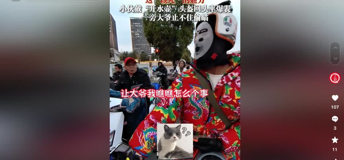 大爷不语只是一味偷瞄!云南昆明,一男子骑摩托车出门,因为自己的“开水壶”头盔过于显眼,一路回头率很高,甚至让身旁的大爷总是忍不住偷瞄。 在云南昆明的某条街上,太阳照在来来往往的车上,有个大哥骑着摩托车慢悠悠地走。他头上戴了个特别搞笑的头盔,看起来就像个“开水壶”,吸引了好多路人看热闹。 这个“开水壶”头盔闪闪发亮,跟着大哥在街上溜达,壶嘴还朝着前面,阳光下那叫一个耀眼。路人们有的瞪大了眼睛,有的憋着笑,还有的赶紧掏出手机拍这个少见的场面。最逗的是路边站着的一位大爷,他嘴闭得紧紧的,也不说话,就是一个劲儿地扭头看大哥,眼神里全是纳闷和好奇。大爷扭了好几次脖子,还是目不转睛地盯着那个“开水壶”,好像在他的眼里,这不仅仅是个头盔,还是个让人琢磨不透的时代玩意儿。大哥呢,好像早就习惯了这种场面,脸上一点表情都没有,继续往前骑,就像戴着个最平常的头盔去买菜一样。 最后,大哥骑远了,大爷也回过头继续忙自己的事儿,好像啥也没发生过,只留下街边上的一串串笑声和阳光里的那点暖意。看来,每个城市都少不了那么几个“活宝”,就像大爷那样,虽然默不作声却偷偷瞄着,这或许就是他对这个世界最和善的态度了。你们有没有碰到过什么好玩的事儿?快来评论区说说吧! ——来自上游新闻2025年3月11日的报道 MCN微伙伴计划