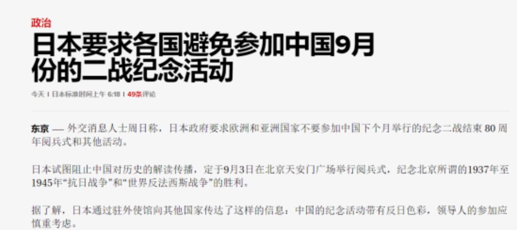 9.3大阅兵临近,日本连脸都不要了:呼吁欧亚各国不要参加,理由让人绷不住