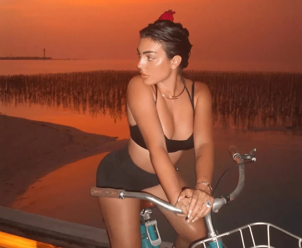 罗哥点球丢冠,罗嫂大秀身材 据《太阳报》报道,乔治娜在社交媒体上晒出了一组自己在晚上骑着自行车,大秀好身材的照片。