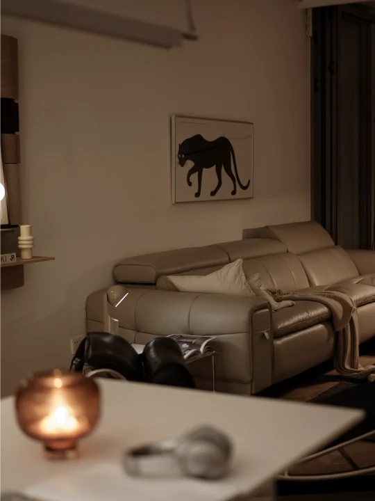 好多人问我家什么风格,我想这可能叫温柔系家居风 👉 低饱和配色:奶茶色+浅灰+黑白,柔和到心坎里! 👉 柔软沙发:瘫上去像被拥抱,追剧/读书幸福感拉满 👉 落地灯+香薰:黄昏时灯光一开,氛围感直接拿捏 这些都属于✨ 细节控的浪漫 软装温柔,布局利落! 男孩的家≠冷冰冰! 柔光与直线条共生,慵懒和自律自由切换~