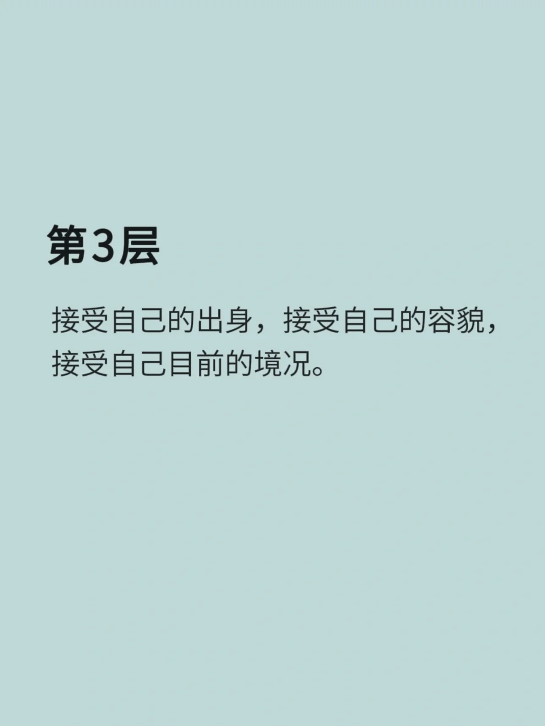 第3层:接受自己的出身,接受自己的容貌,接受自己目前的境况。
