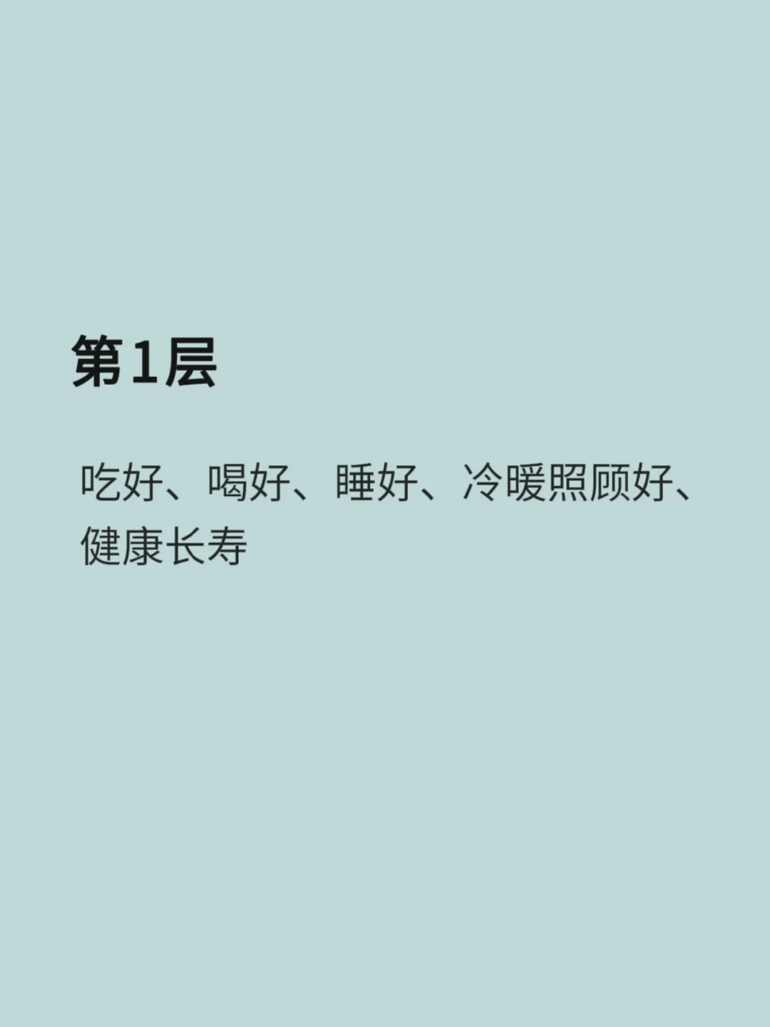 第1层:吃好、喝好、睡好、冷暖照顾好、健康长寿;