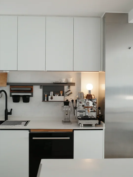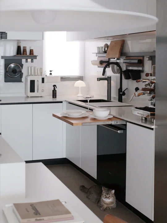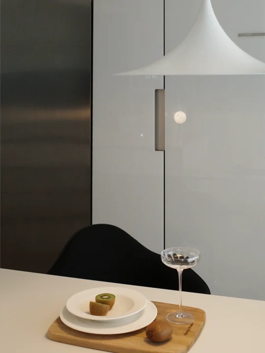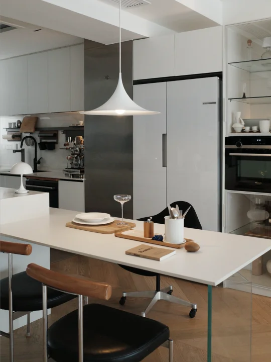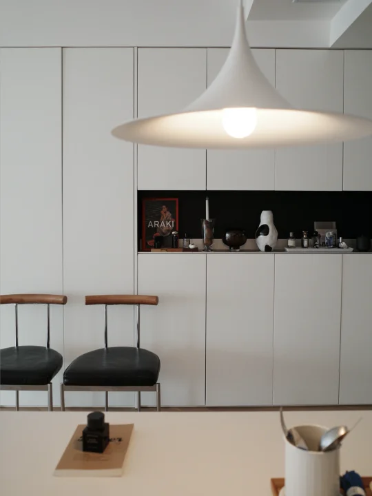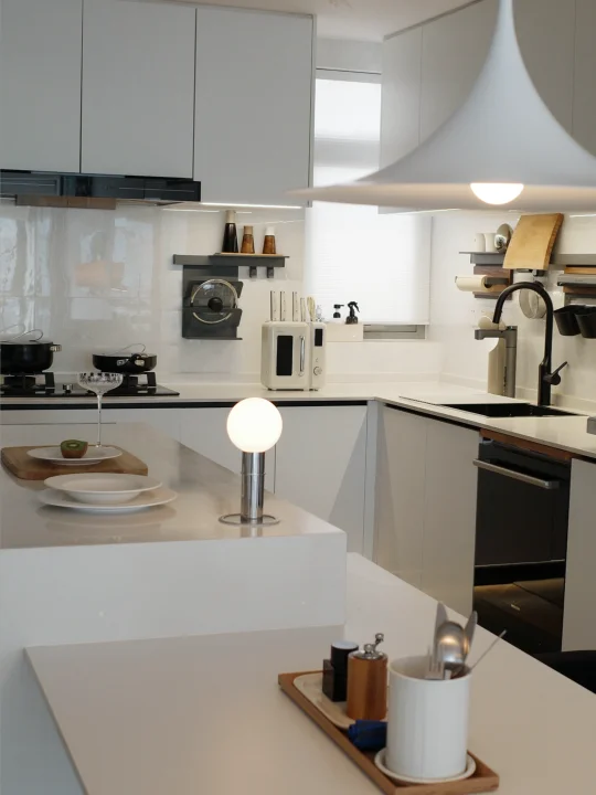 厨房果然是干净就会好看 东西各归各位的秩序感 好治愈人 喜欢收纳性质的厨具 可以杀菌又可以收纳的刀具组合 颜值也很高 强推 换了餐桌的吊灯 一切都是白白的 果然有点韩系