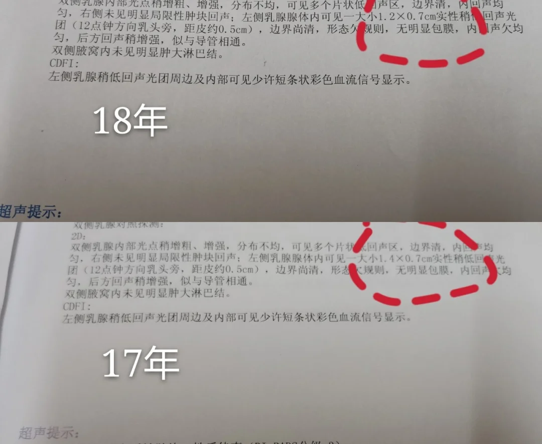 接着我就去医院🏥检查了乳腺,结果就是第一张图那样,什么纤维瘤,囊肿什么的好吓人,但是医院建议我定期检查,观察它的发展情况,也没有说完吃药也没有说完手术干嘛的,其实应该不算大问题,这种情况很多女生都有!