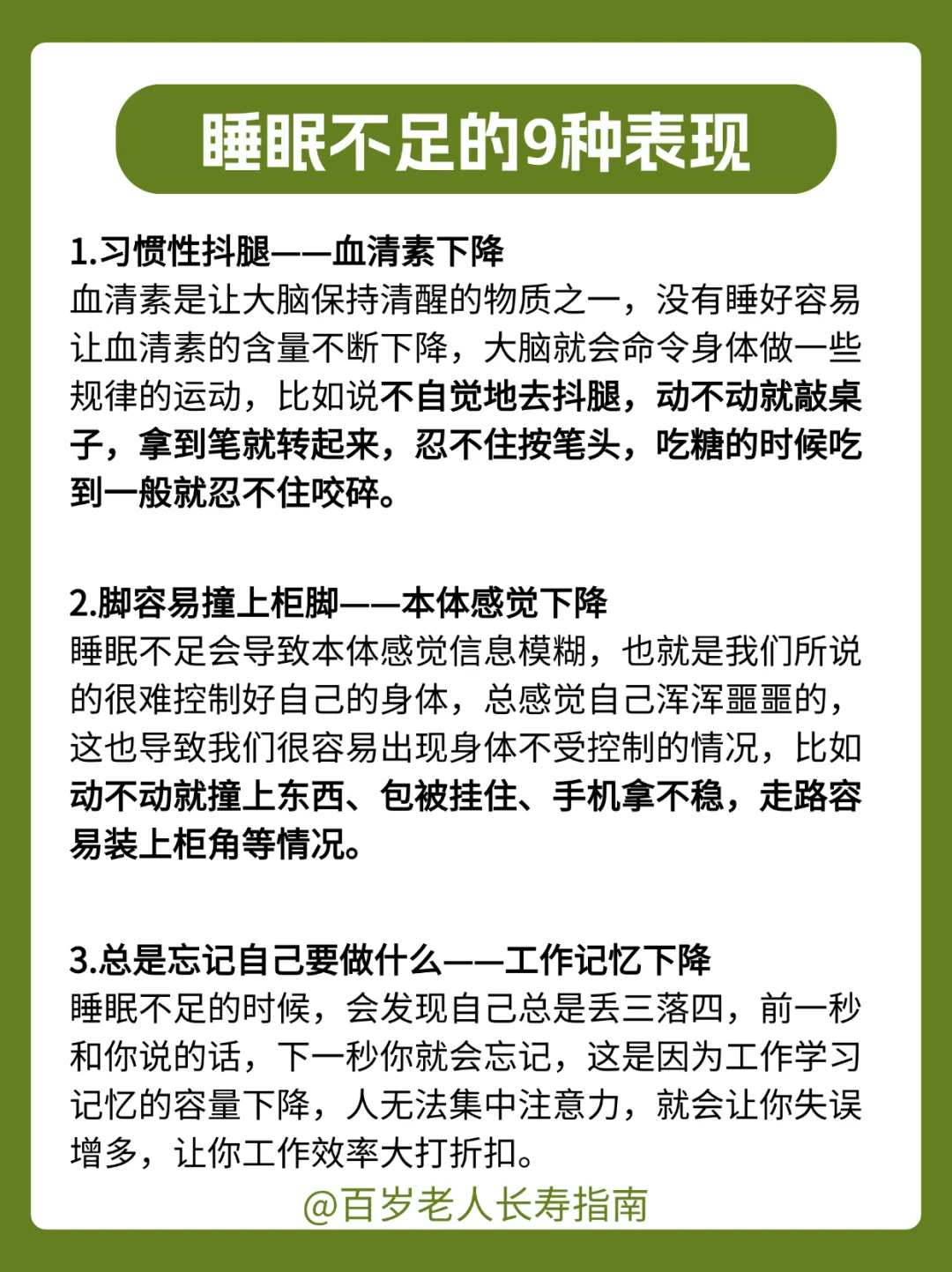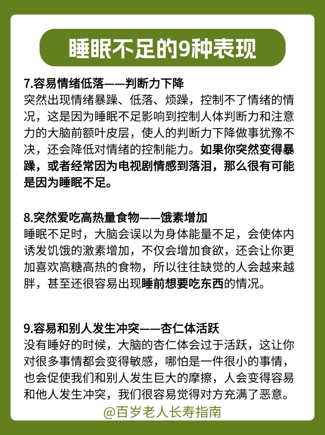 如果你长期睡眠不足7小时,那么你可能出现下面几种情况: