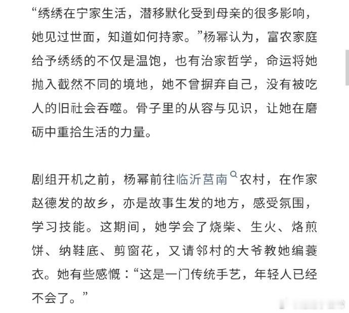 杨幂拍完生万物爱上了自然从杨幂的访谈中,我们不难看出她对角色的敬业精神。她为角色所做的每一份努力,都让她与宁绣绣更加贴近,也让她对生活有了更深的感悟与热爱。