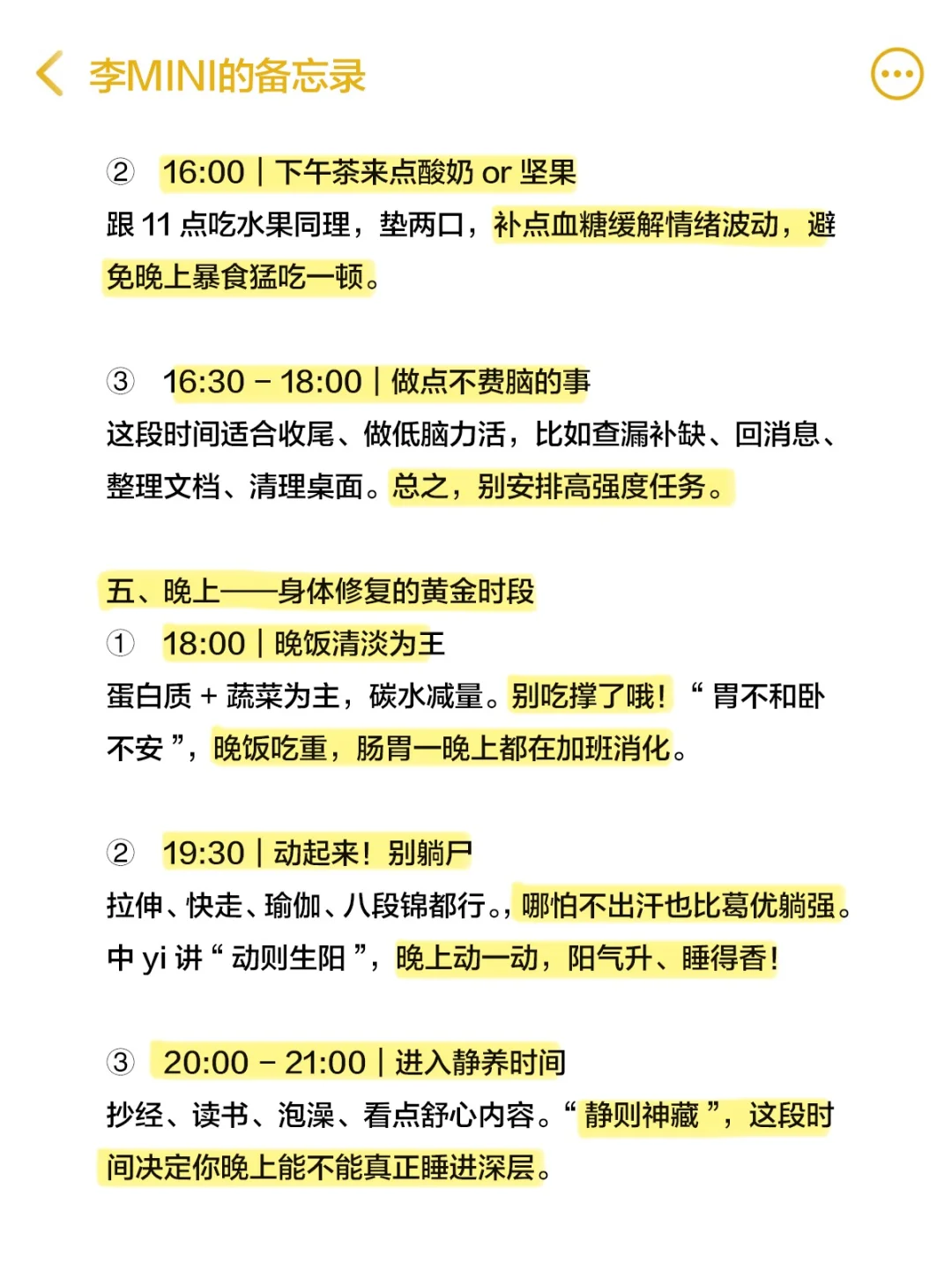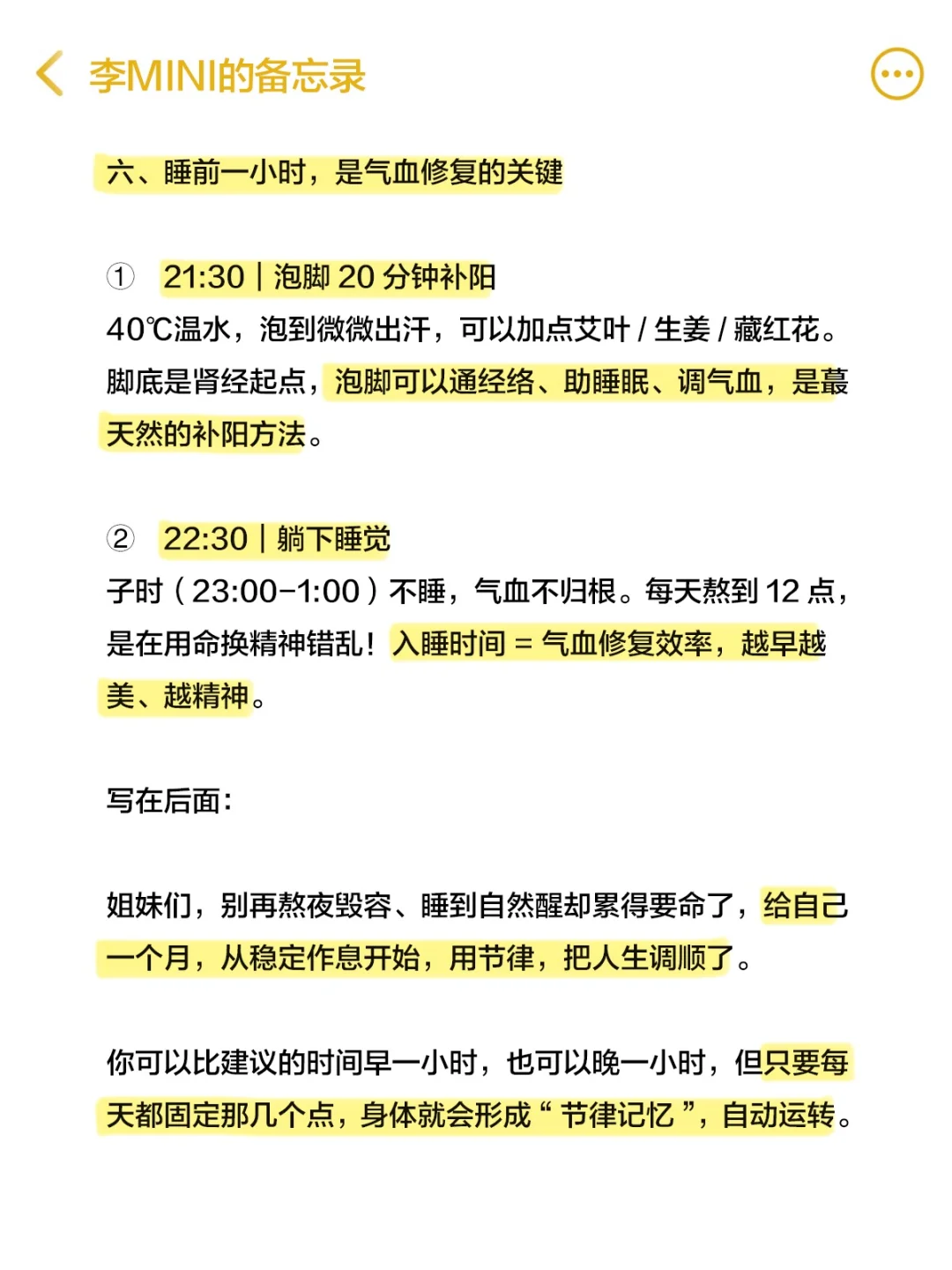 还是那句话自律、养生都不是苦修,也不靠激进!先从1-2个开始培养习惯,再慢慢加入其他。身体会形成「节律记忆」,自动运转~