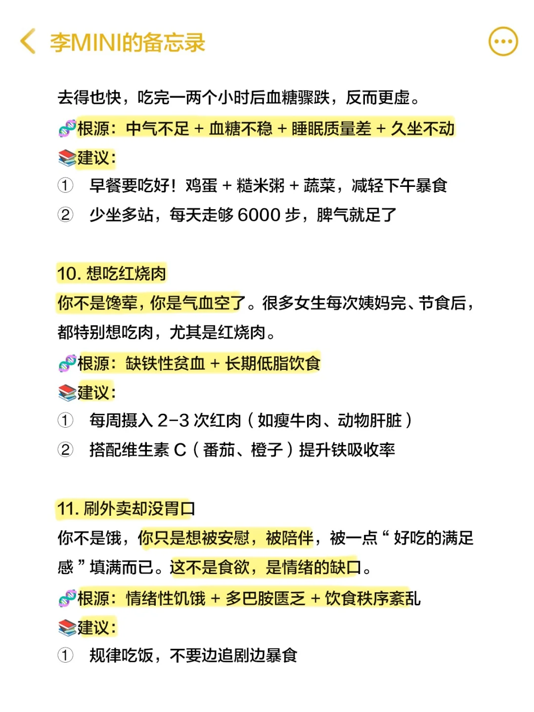 9. 想吃锅巴、蛋黄酥:中气不足 + 血糖不稳 + 睡眠差 + 久坐