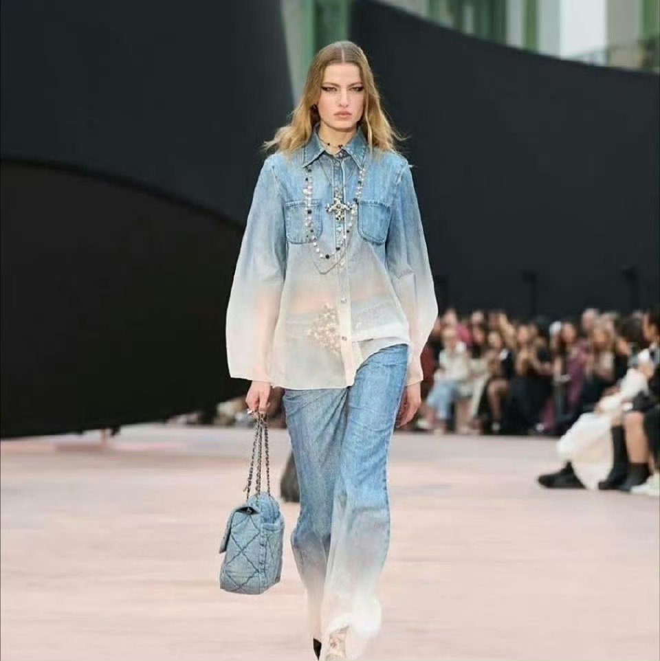 香奈儿这衣服超神奇,上牛仔下纱竟然无缝合痕迹,咋做到的。。