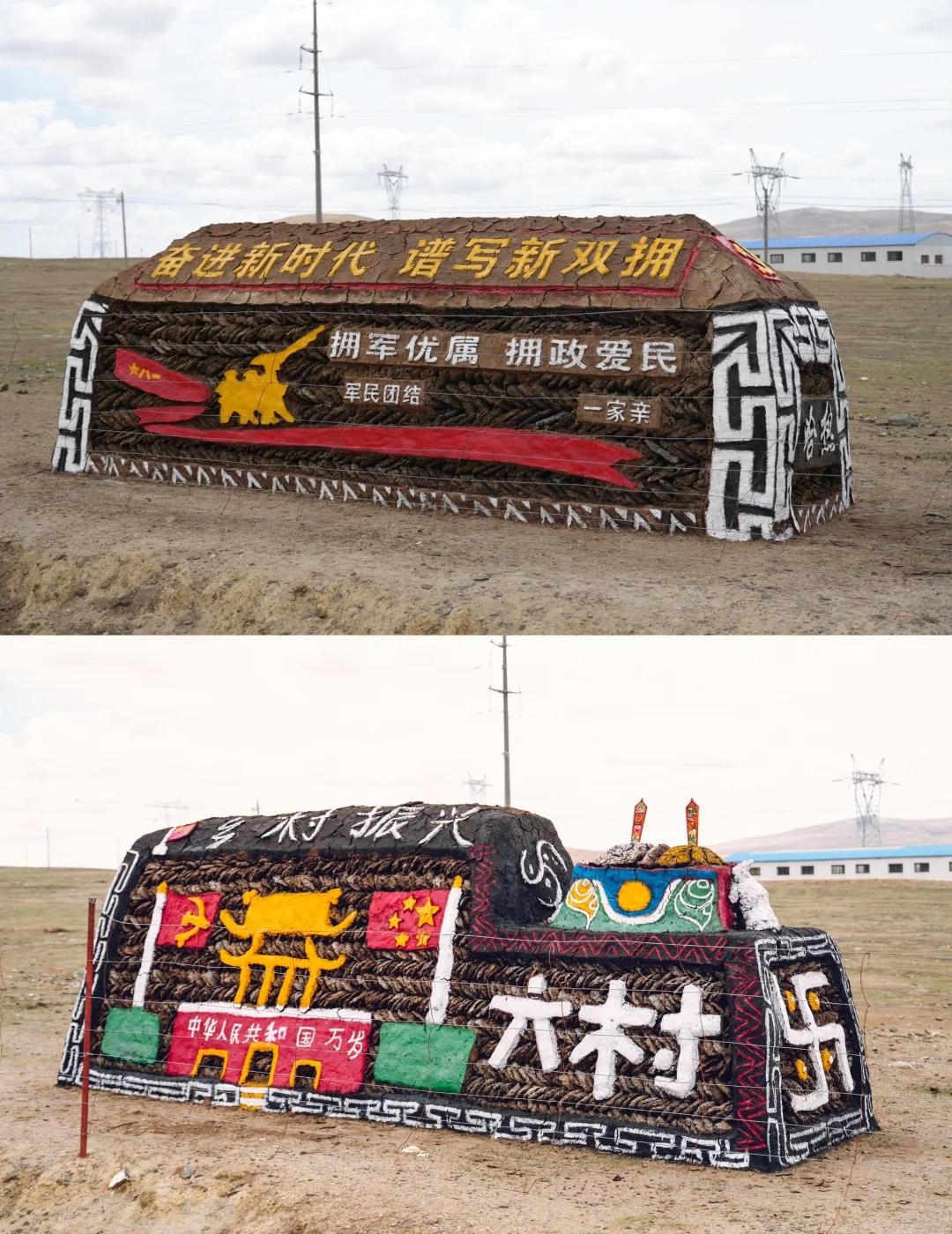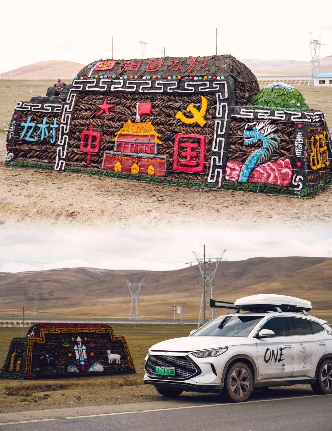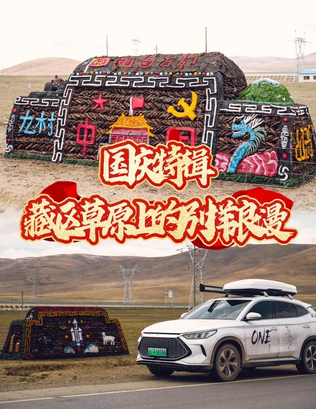 🇨🇳国庆特辑 | 藏区草原上的别样浪漫 Hi,我是棚子。 一个生活在大理的摄影师。 今天是祖国母亲的生日🎂 ,在这特别的日子里, 想和大家分享我上次进藏在那曲到崩错之间遇见的超温暖画面~ 那些由牧民用牛粪堆砌而成的独特造型,一下子就撞进了我的视线。 赶紧在保证安全的前提下靠边停车,记录下这美好的一刻。 给我家大宋宋(比亚迪宋plus )留下不一样的瞬间定格。 你能想象吗?一块块牛粪饼,不再只是燃料,它们摇身一变,成了表达美好祝愿的载体 。 有象征祖国昌盛的宏伟图景、有描绘航天梦的火箭图案、还有代表红色精神的嘉兴红船、以及体现拥军爱军情怀的画面…… 每一处细节,都饱含着藏区人民对祖国的热爱与祝福,这是属于他们独有的浪漫。 当看到它们的时候,让我觉得,无论相隔多远,对祖国的那份深情,都是一样炽热。 这个国庆节,我想把这些分享给大家。 让这些特别的遇见,变得更加意义非凡。也祝愿我们的祖国,繁荣昌盛,越来越好! 宝子们,你们在旅途中有没有遇到过类似让人动容的场景呀? 来评论区分享一下吧~ 国庆节 牛粪艺术 自驾探索编辑部 十一户外漫游 欢度国庆 聚浪海洋国庆HIYOUNG 比亚迪海洋聚浪汇