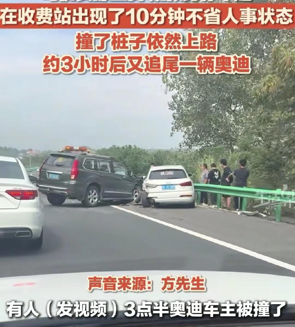 一男子假期期间带着家人去旅游的途中 在高速路上发现有一辆车很奇怪 速度不超过10码,左撞右撞的车头已经明显凹陷,追上前去,发现司机大约60多岁,头部歪倒在一侧,按喇叭提醒他也没有反应,就像失去意识了一样 该男子把车停应急车道跑上前去拍打车门,车门打不开,男子使劲拍打车窗,该司机才醒来一点点,并说了一句“你拦我车干嘛” 男子不放心一直跟着这个司机到了收费站,不知怎么的,这个司机突然踩了油门撞到收费站的石墩子上 后续相关部门回应该司机年龄较大,并且驼背,交流存在困难,当天该车已经发生多起事故了 这也太吓人了吧,都这种状态了怎么还开车啊,还上高速,还在假期车流量大的时候上高速,真危险 给这位好心的男子点赞[赞]好人一生平安