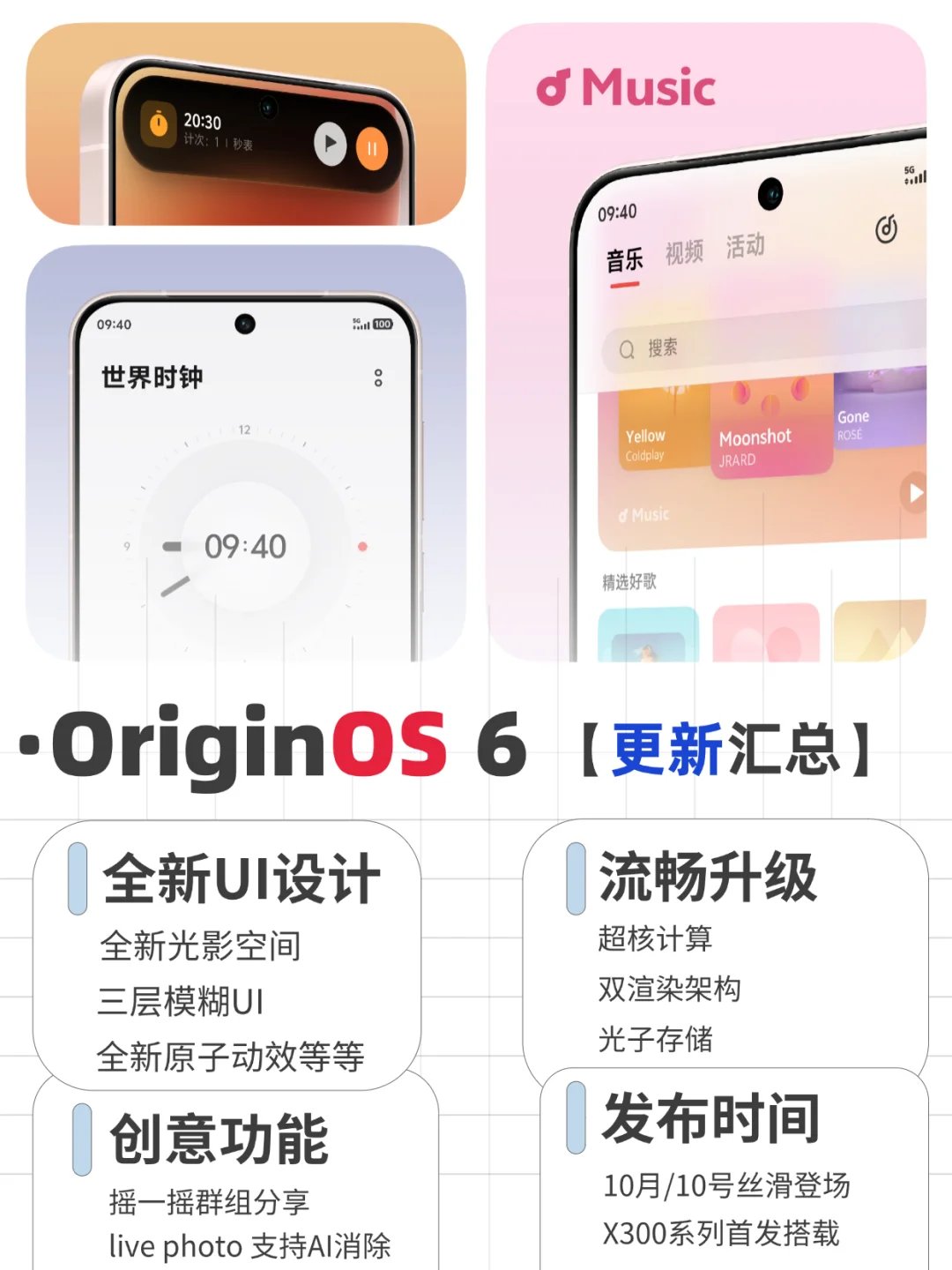 OriginOS 6将于10月10日正式发布,届时vivo X300系列将首发搭载!颜值党+性能控赶紧蹲住发布会,一起解锁流畅新体验吧~