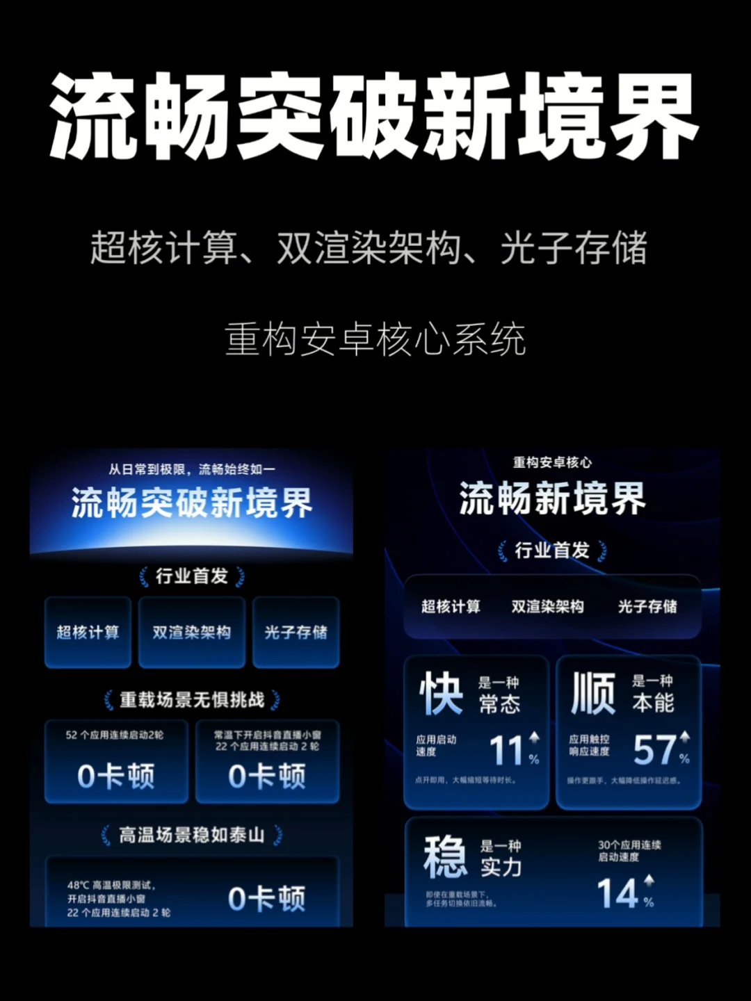 ✔底层黑科技加持:超核计算+双渲染结构+光子存储,久用不卡,而且老机型也能焕发第二春!