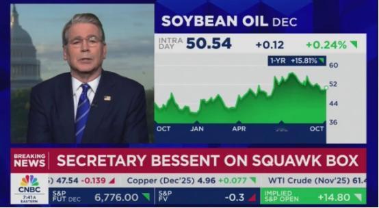 美国财长贝森特北京时间10月2日晚接受采访时表示:不幸的是,中国决定将美国大豆种植户作为贸易谈判中的人质或棋子。 北京时间 10 月 2 日晚,美国财长贝森特接受采访时这话听得人一愣:不幸的是,中国决定将美国大豆种植户作为贸易谈判中的人质或棋子。美国农民以压倒性多数投票支持特朗普总统…… 你应该会在周二看到有关中国将大力支持我们农民的消息。 这话听着硬气,可只要扒拉一下最近中美大豆贸易的实情,就知道满是窟窿。先得说,贝森特这身份分量不轻,作为特朗普政府的核心经济官员,还是昔日索罗斯门徒,他的话基本就是白宫的态度。 可这位财长之前刚因为搞错中国出口占 GDP 比重闹过笑话,专业度都被网友吐槽,现在说大豆贸易的事,能不能靠谱还得打个问号。 他说中国拿美国豆农当棋子,可实际情况是,美国大豆早丢了中国市场的主动权。 美国农业部数据显示,今年 4 月有一周中国才买了 1800 吨美国大豆,比前一周的 72800 吨掉了一大截,之后更是连续多月没像样的订单。 要知道中国以前可是占美国大豆出口市场的 60%,现在这块肥肉被谁叼走了?巴西呗,2024 年中国进口大豆里 71.1% 都来自巴西,美国只占 21.1%。 贝森特这边刚牵头给阿根廷搞 200 亿美元救助,那边阿根廷就取消大豆出口税,把大批大豆卖给中国,等于帮中国攒了更多谈判筹码,这操作连美国谷物交易商都骂他蠢。 再说他吹的美国农民压倒性支持特朗普,这话现在说出来怕是有点心虚。中西部大豆主产区是共和党的票仓,以前农民确实买特朗普的账,可今年丰收季都快变成绝望季了。 普渡大学的晴雨表显示,七八月农民情绪指数连跌,地里大豆堆成山,价格却跌得厉害,成本还因为关税涨了一大截 —— 化肥、农机全变贵了,等于种得多赔得多。 明尼苏达州那个四代务农的达林・约翰逊都急疯了,说就算现在谈成协议,也赶不上今年的收获季,搞不好要血本无归。堪萨斯的农民联盟负责人更直接:农民快崩溃了,政府就只会说等等,我们等不起! 贝森特许诺周二有中国支持农民的消息,这饼画得也太大了。且不说周二到底能有啥动静,中国商务部 9 月 25 日就明说了,要扩大大豆贸易,美方得先取消不合理关税,这是前提条件。 现在关税还挂着,中国早把订单给了南美 ——8 月就锁定了 9 月 800 万吨大豆全从南美进,10 月的订单一半也来自那,美国大豆连边都摸不着。 更别说贝森特自己都承认,和中国的全面贸易协议还没开始谈,两三年内能不能成都是未知数,现在就敢说 “大力支持”,怕不是想骗农民选票? 其实白宫早给农民开过大空头支票了,说要逼别国买美国农产品,结果和日本的协议签了,买的量反而比以前少;说给补贴,600 亿美元援助要从营养补贴里抠,还得等下个种植季,等于画了张远期白条。 堪萨斯参议员杰瑞・莫兰都看不过去了,直言没见着任何援助提议,农民要的是市场,不是这点补偿。现在贝森特跳出来说中国拿豆农当棋子,倒不如说是特朗普政府把农民当筹码。 为了关税战,硬是把最大买家推给了竞争对手,自己救助的阿根廷还反过来抢市场,最后倒打一耙说中国的问题。周二的消息能不能来还是个谜,就算真有零星订单,比起美国豆农的损失也是杯水车薪。 那些在地里发愁的农民怕是也清楚,这不过是选举前的安慰话,真要救他们,不如先把关税降了,把市场抢回来,光靠嘴说可填不了粮仓的窟窿。