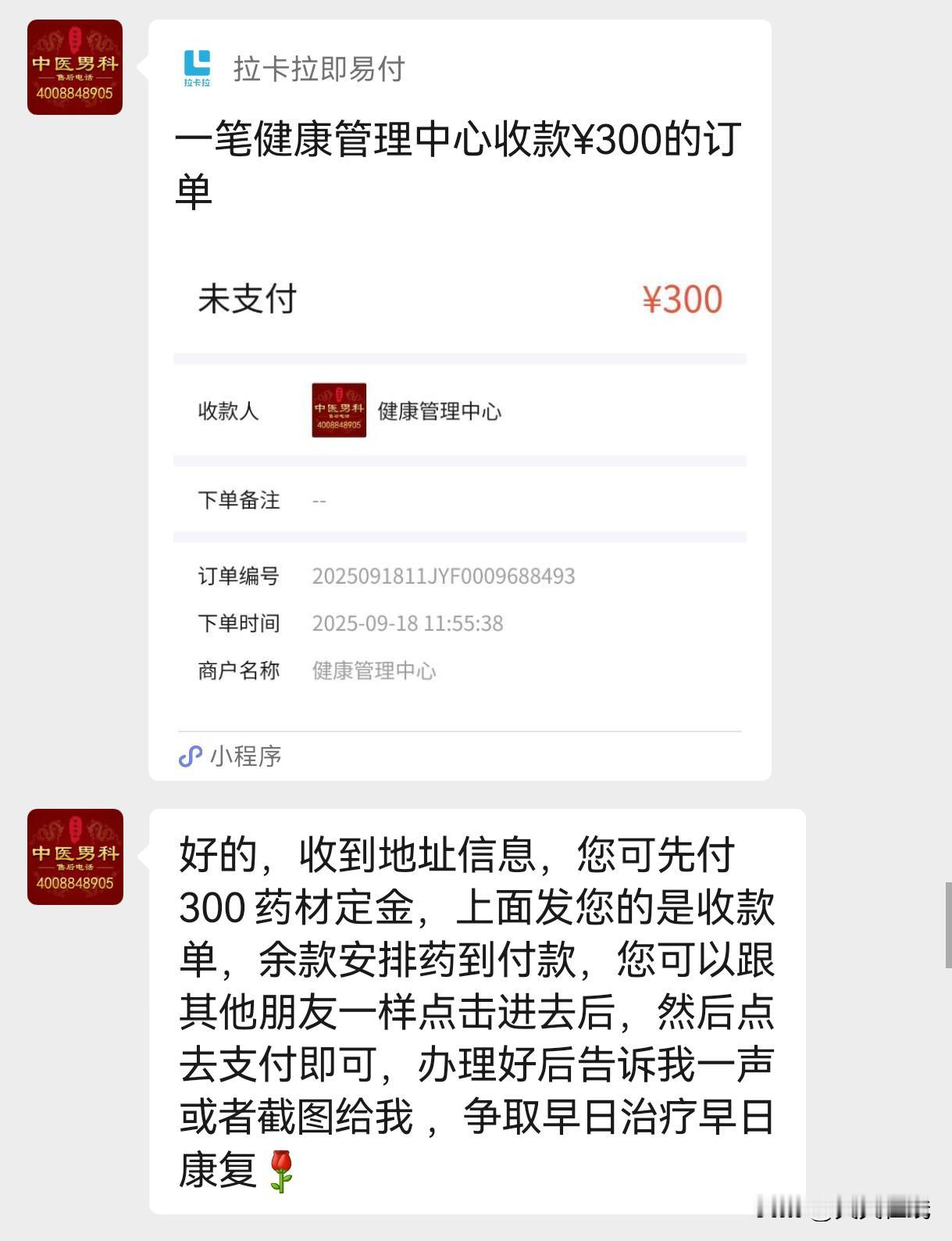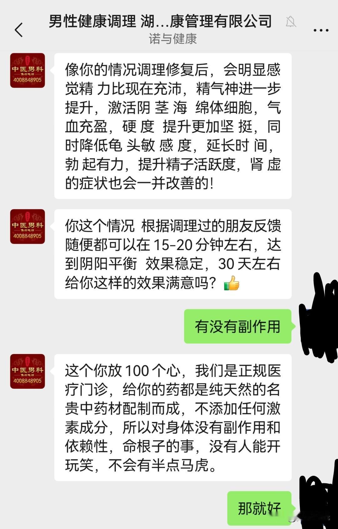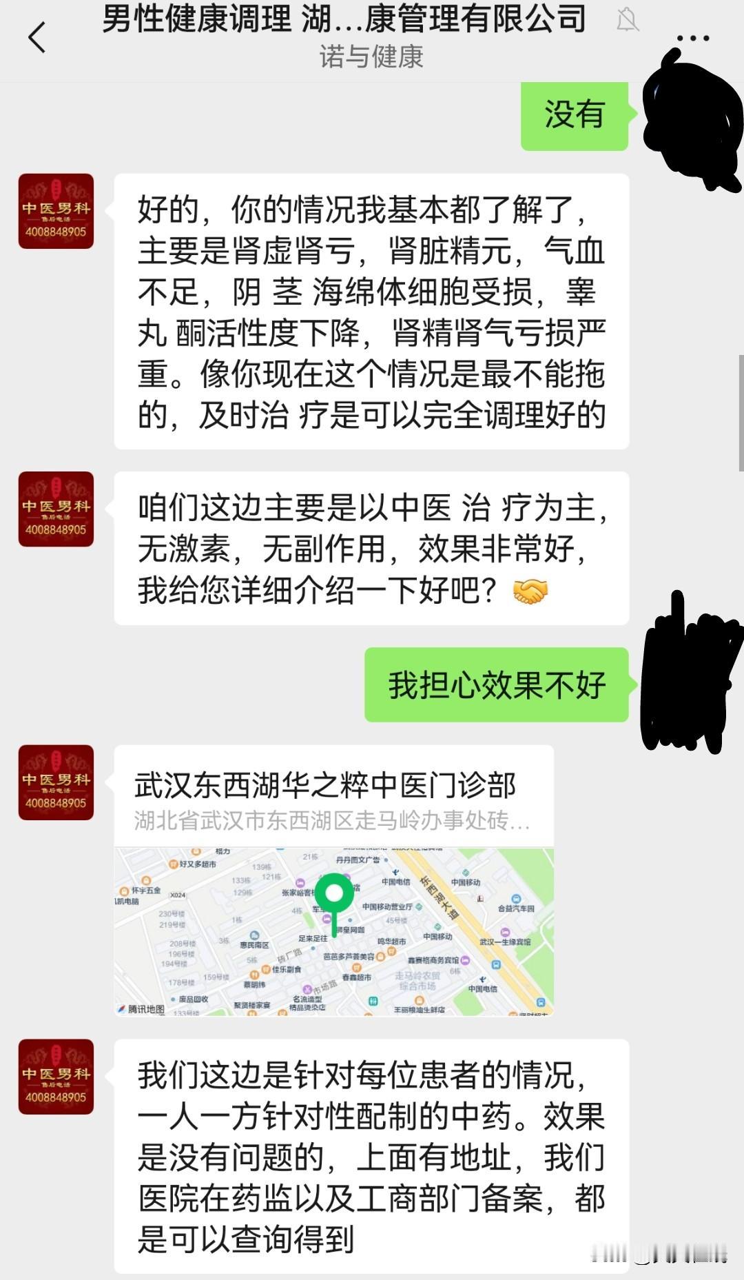 【虚假宣传冒充中医,湖北诺与健康管理有限公司谁来监管?】 9月18日,西安的小张(化名)通过企业微信从湖北诺与健康管理有限公司购买了男性药品,收到药品却是“三无”药品,该公司在百度平台大量发布虚假广告,通过企业微信等私域平台销售“三无”药品谁来监管? 湖北诺与健康管理有限公司虚假宣传,业务员销售员自称中医,通过专业话术诱骗患者在线就医。 据悉,湖北诺与健康管理有限公司借助百度平台大肆投放极具诱惑性的虚假广告。该公司注册地址:湖北省武汉市东湖新技术开发区光谷大道58号关南福星医药园二期9号楼13层03-63室。 虚假广告宣称提供中医在线问诊服务,所售中药是依据患者身体状况现抓现炮制的纯中药,实行一人一方,还保证药效显著,患者只需服用一个疗程便可直接康复,且无任何副作用。一个疗程30天,费用高达 1886元 。 销售员业务员(冒充中医)自称:该公司的药品,可以增加活性因子+附加增大增粗 ,调理好客户反馈 性生活时间延长在20分钟以上,阴茎增粗增长效果明显,勃起状态对比以前显得更加饱满、更长更粗,对自己的产品100%信任。如此诱人的专业话术,只是为了更好的诱骗患者。 然而,患者满怀期待收到药品后,却遭遇了令人失望的情况。药品只有简单的包装,没有生产厂家,也没有追溯源。该公司只负责销售药品,不负责治病,药品买回来3天时间,患者却不知道该怎样服用药品,四天的时候,该公司打来一次电话,由于没有接到电话,药品服用情况依然是个谜。同时,制造药品需要具备相应的资质,其中医疗机构制剂许可证是关键的许可文件。目前,该公司制造药丸是否拥有此证尚不明确,该公司是性质是健康咨询公司,并不是中医医院,该公司在网络上公开问诊,并且冒充中医,自行生产药品的行为是否合规令人存疑? 此前,国家曾积极开展医疗乱象,重点打击虚假、夸大宣传,误导消费者的违法行为等。诱导消费、虚假宣传的行为严重侵害了老百姓的合法权益,必须予以严厉打击。希望有关部门加强对该企业的监管力度,让老百姓的合法权益切实得到保护,维护医疗市场的健康有序发展。 然而湖北诺与健康管理有限公司虚假宣传,销售人员业务员冒充中医,为何屡禁不止? 有关部门是否知情? 9月25日患者,通过湖北武汉12315投诉该企业,虚假宣传冒充中医在线问诊。 9月26日武汉东湖高新区市内监管局,打电话称:正在正在核实并及时处理,直到今天依然没有具体的答复。(本人附有录音) 希望有关部门抓紧时间处理,给患者一个答复。让老百姓的合法权益切实得到保护,同时为医疗市场健康有序发展保驾护航。 同时,也希望湖北武汉有关部门过好国庆小长假。虚假宣传疗效 中医诈骗 营养品骗局 虚假药品广告 医疗机构打假 湖北
