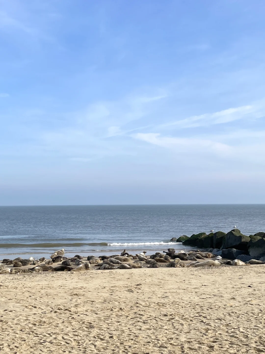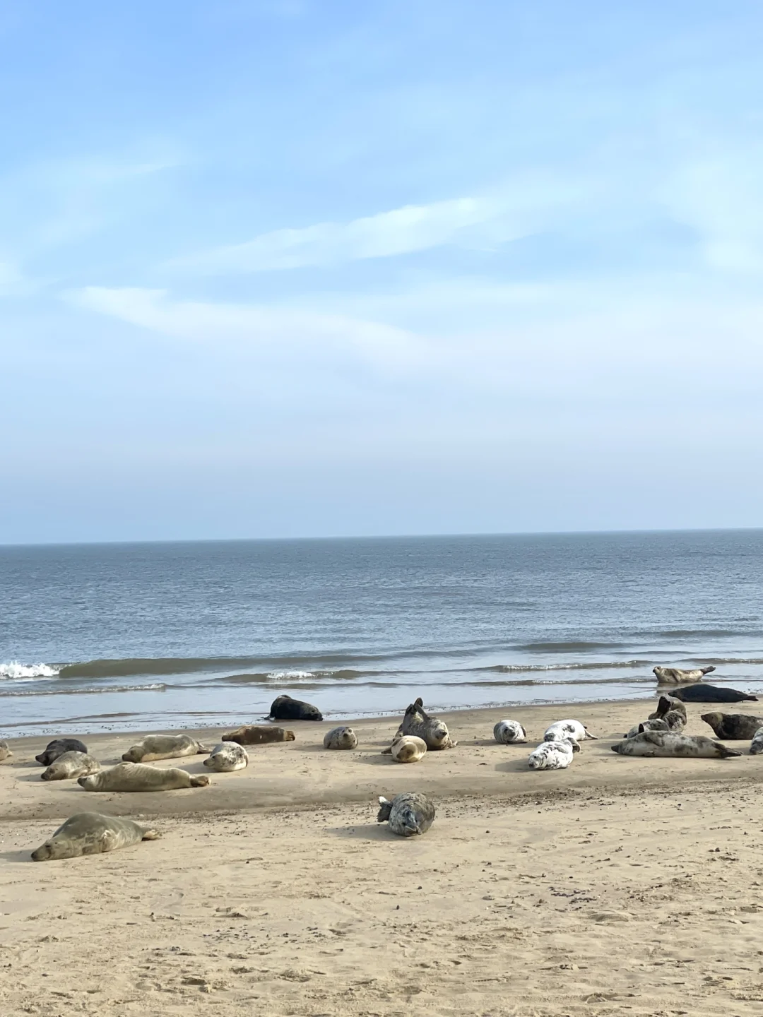 才发现伦敦周边还可以去看海豹! 地址直接搜horsey gap 建议自驾哦 (公共交通不太清楚 记得在冰岛的时候 看海豹规定必须要保持150米 英国竟然只需要保持10米!真的好近啊! 第一次这么近距离的接触野生海豹群 我们从25号海滩走到30多号 差不多从30号开始就一路都是海豹啦[萌萌哒R] 光是这片区域就有上百只 狗里狗气的海豹好可爱!(就是有点臭臭的 大家尽量选择下午两点之前到哦~ 海豹晚上会在岸上过夜 下午就会游回海里了 没什么游客 只有两三个管理人员 体验极佳