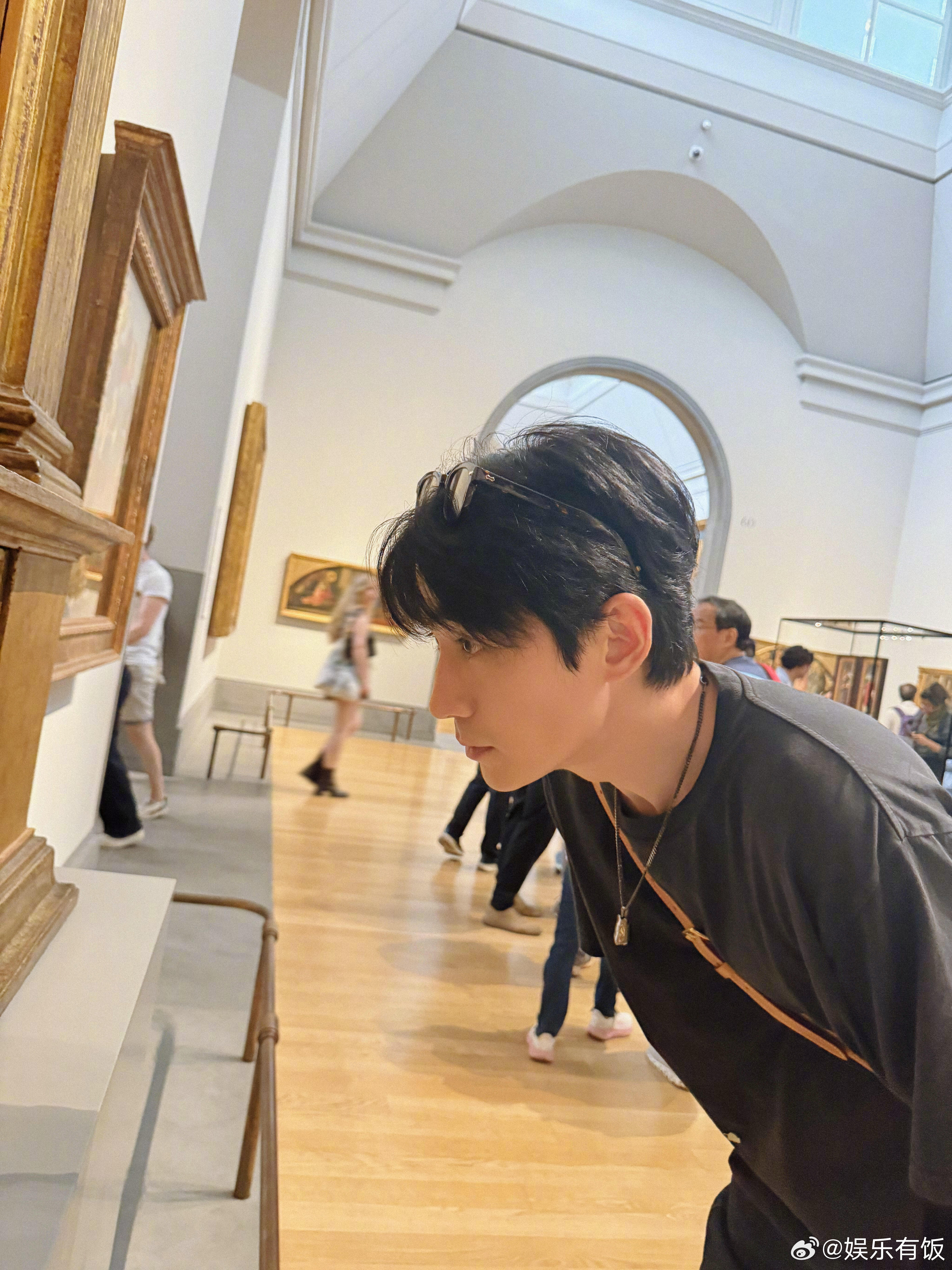 朱一龙去逛美术馆了朱一龙的工作人员分享的日常,龙哥去逛美术馆啦[期待]私服也