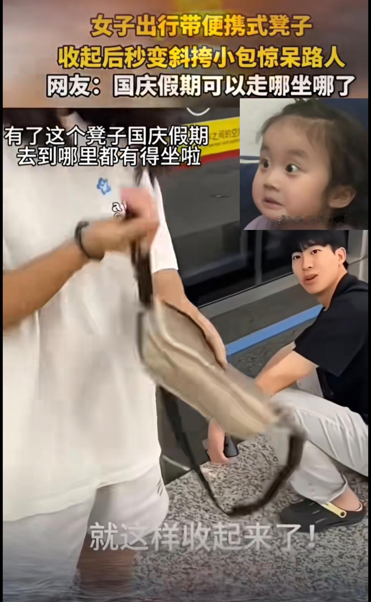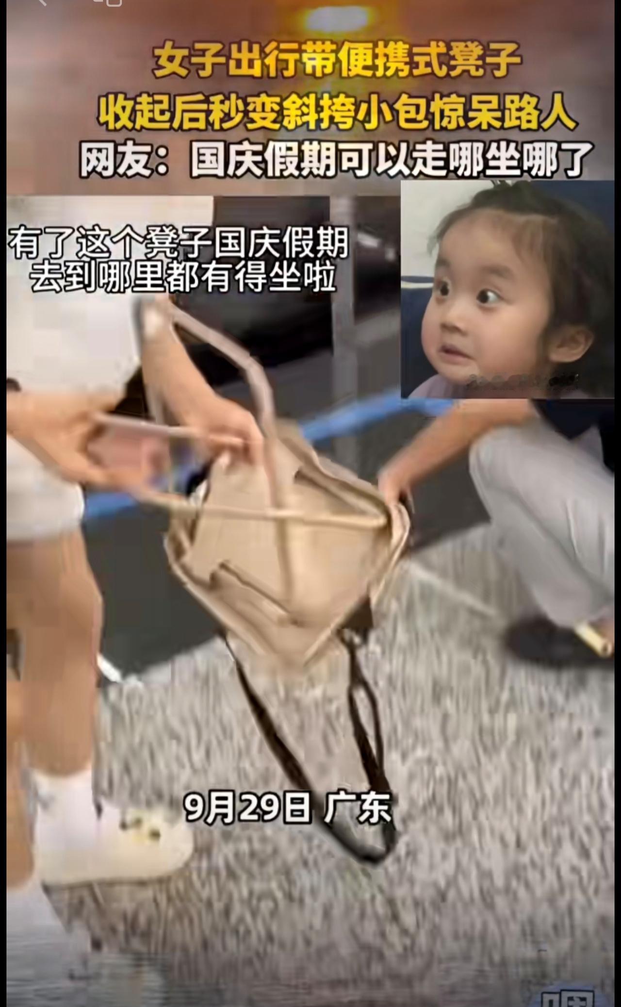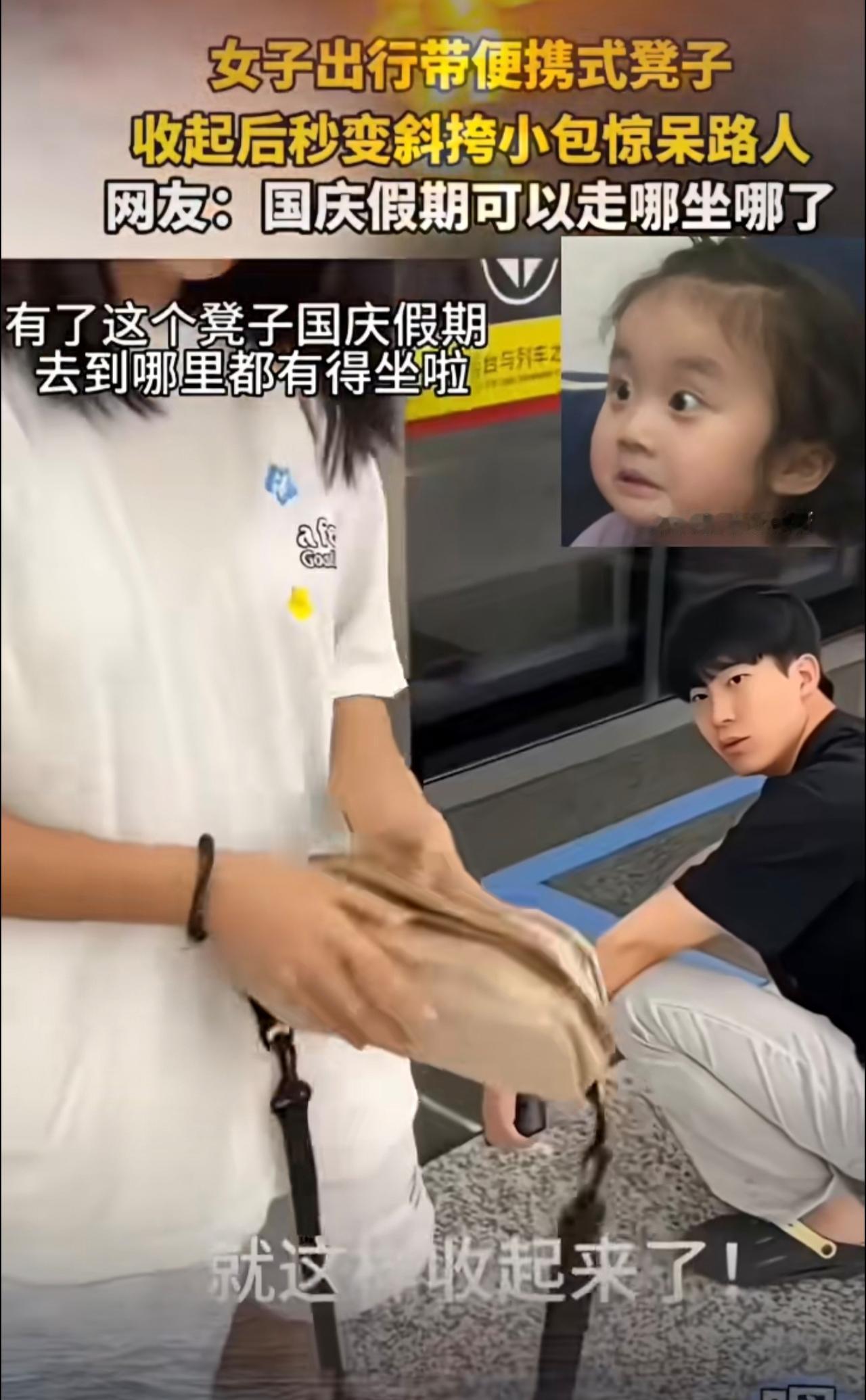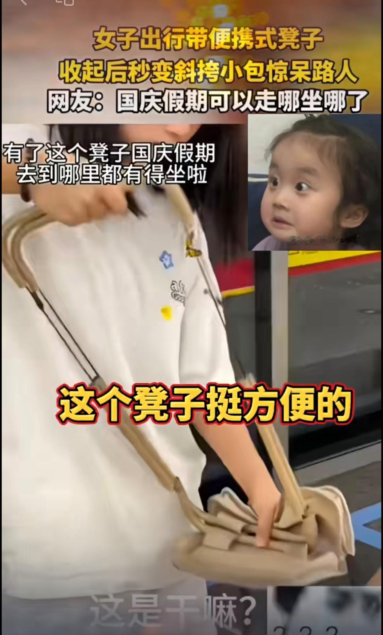 女子出行带便携式凳子 收起后秒变斜挎小包惊呆路人 网友:国庆假期可以走哪坐哪了