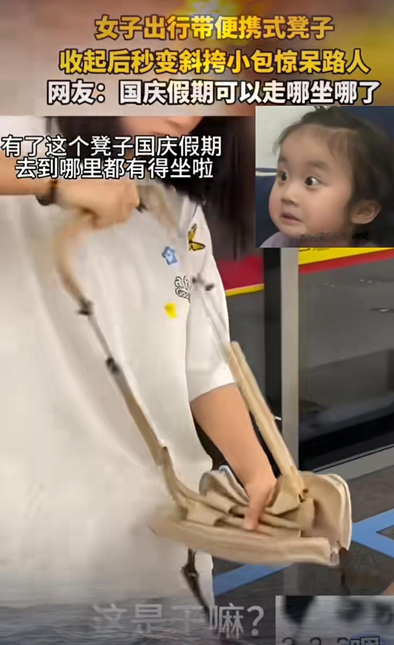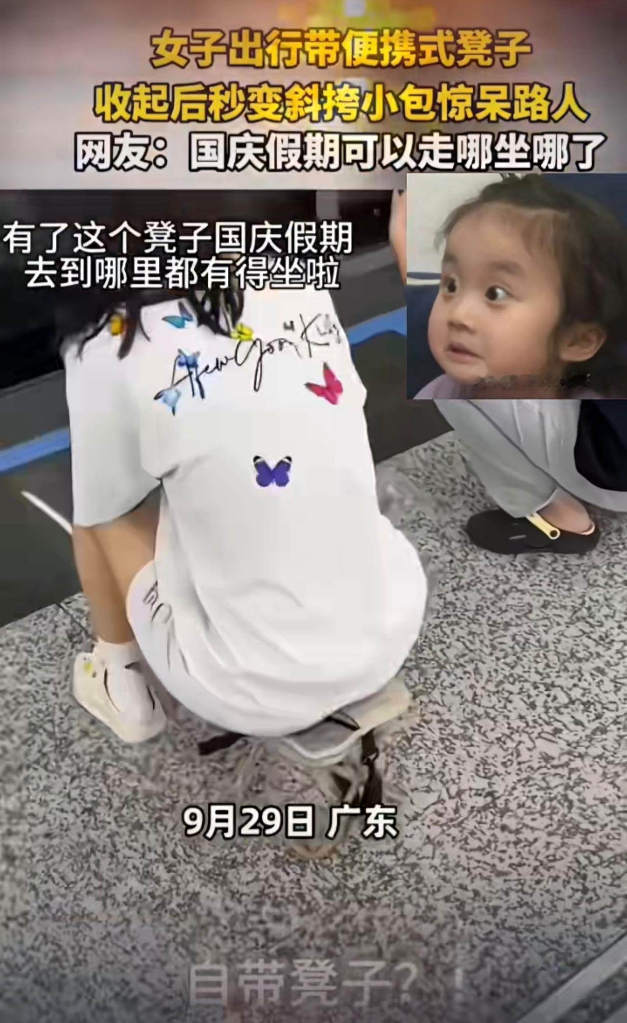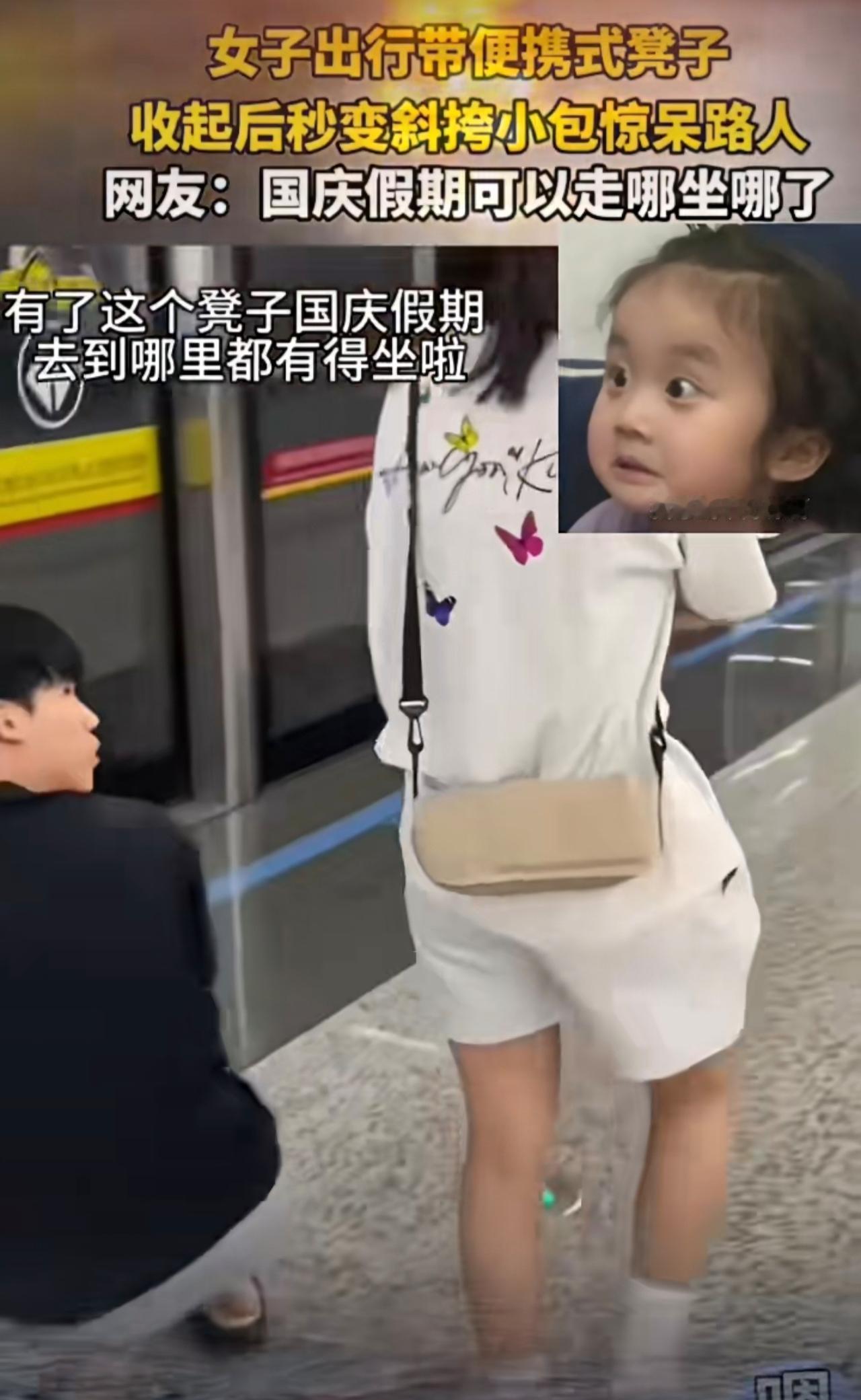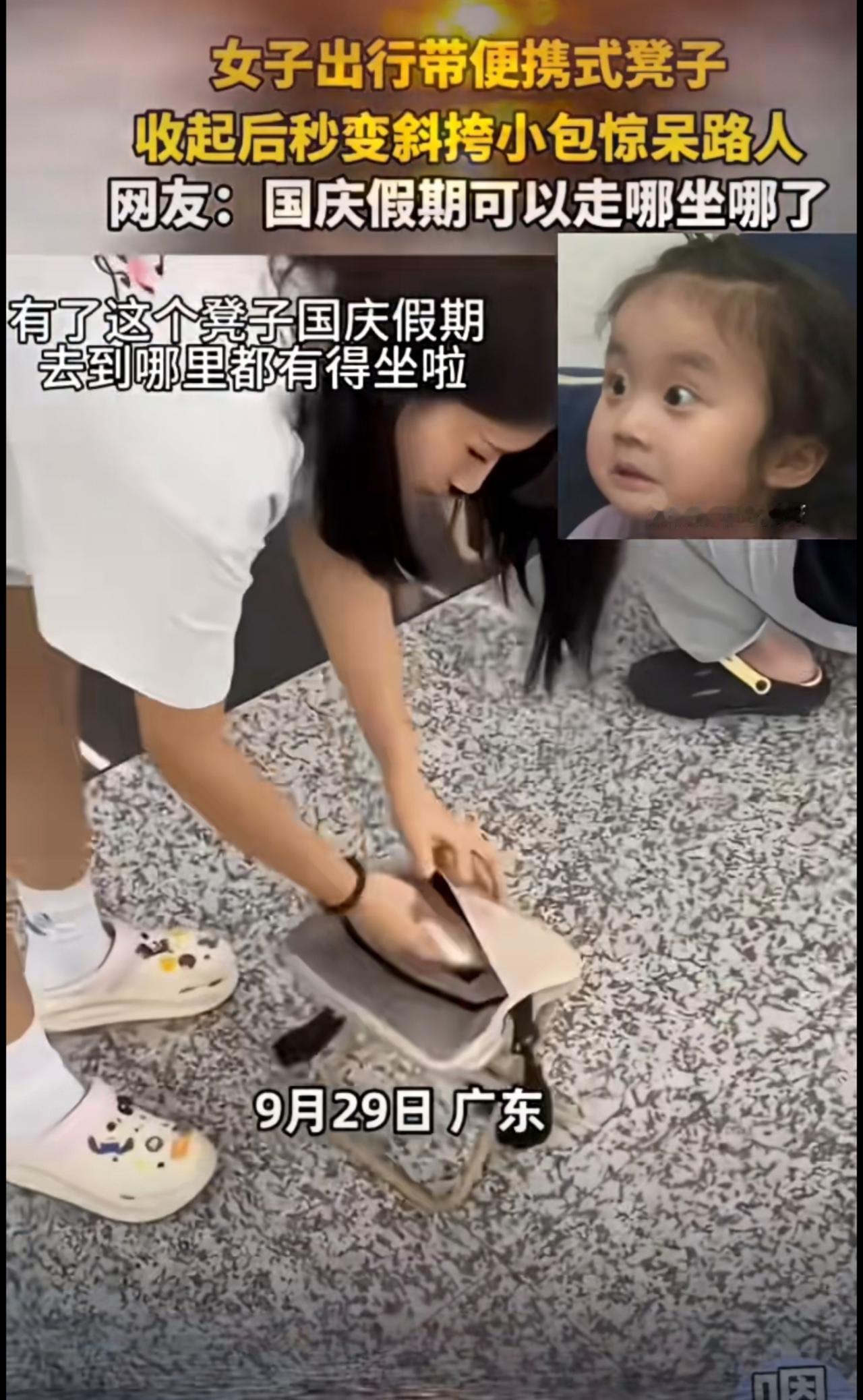 女子出行带便携式凳子 收起后秒变斜挎小包惊呆路人 网友:国庆假期可以走哪坐哪了