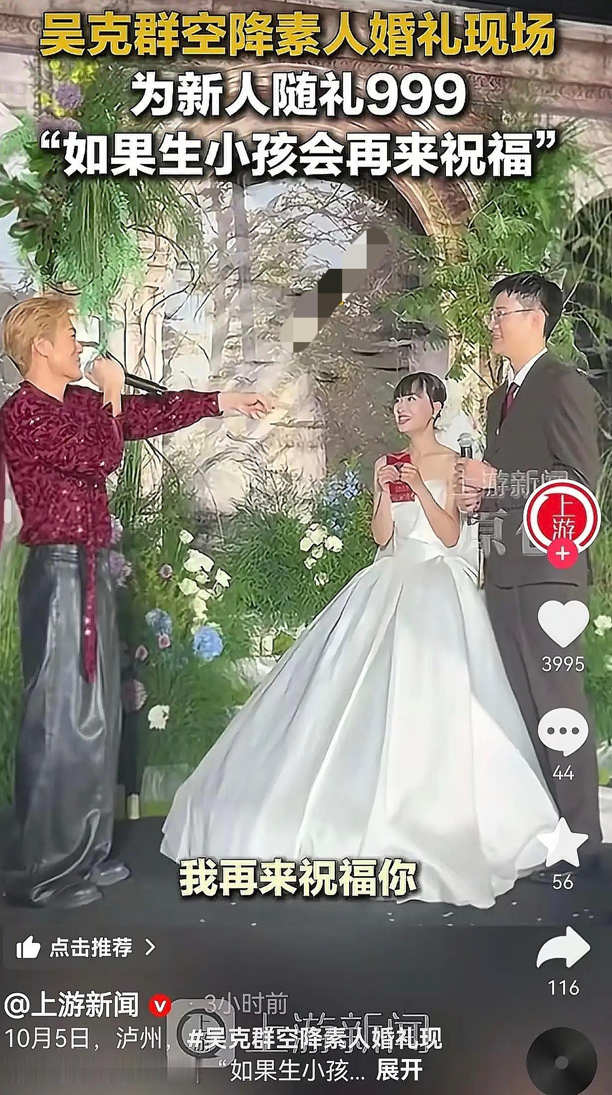 吴克群估计后悔了 他千不该万不该 不该突然间空降泸州新人婚礼!这下好了吧,一大堆演出商来问接不接婚礼,甚至可以给到五六百万! 经纪人一句“浪漫随机,给钱不去”直接拒了。要知道他可不是走个过场,不仅自掏腰包送999元红包讨“长长久久”的彩头,还现场首唱新歌, 这哪是明星突袭,分明是把普通人的幸福当回事。比起圈里动辄天价的商演,他宁愿在婚礼现场当“行走的祝福机”, 现在终于懂了,为啥大家羡慕那些新人。这种不带功利的温暖,才是最打动人的林诗栋接发球短板怎样才能有效补齐 王楚钦林诗栋获男双冠军有哪些精彩瞬间 刘德华为什么越老演技越好?