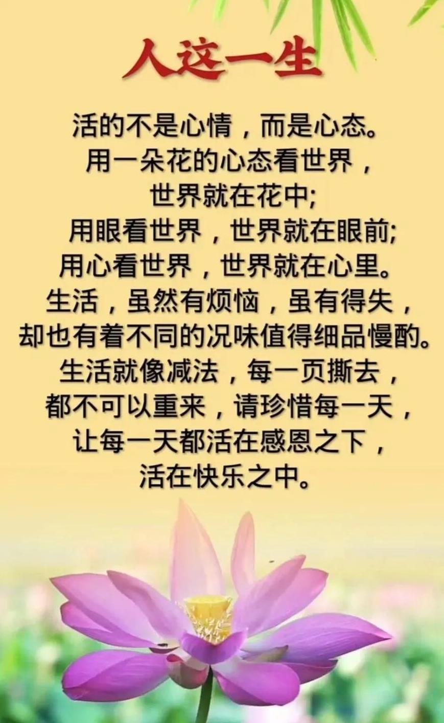 人这一辈子, 或跌宕起伏, 或波澜不惊; 或风光无限, 或普通平凡; 或功成名就, 或碌碌无为。 活的,都只是一个过程, 终将殊途同归。 日出日落,就是一天, 寒来暑往,便是一年。 一生很长,恰似苦海无边, 一生很短,犹如昙花一现。