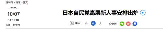 10月7日上午,日本首相高市早苗决定了!   党内“造王者”麻生太郎任日本自民党