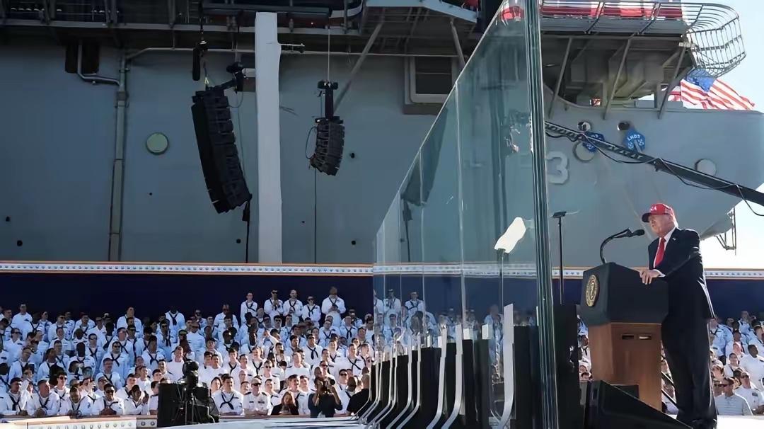 为何在自家航母演讲,仍需躲在防弹玻璃后? 实在想不通啊,在自己的超级航母上发表