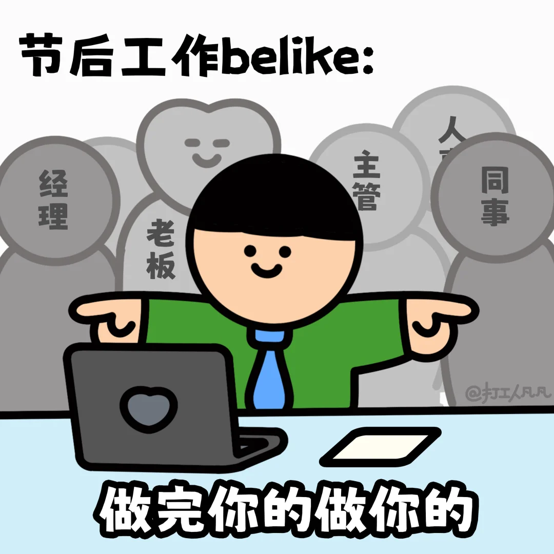 大家好,我是打工人凡凡。 今天周二,又是不想上班的一天!🍐 工友们告诉你一个坏消息 小长假即将结束[哭惹R][笑哭R][捂脸R][惊恐R][扶墙R] 这个假期你过得怎么样呢? 已经想象到9号我坐在办公室那副[大便R]样子惹, ⚠️该用户已被抓回来上班 🙋🏻♂️报告我回来吃苦了 [举手R]我做完你的做你的 💻工位主理人 😔很生气为您服务 💥天空一声巨响,老奴闪亮登场 🐔强制开机 [清单R]杂家:啥活都干 🧱被迫营业中 🌟又该去做那讨厌的工作啦 你会选哪个当你的节后复工头像呢?[看R]