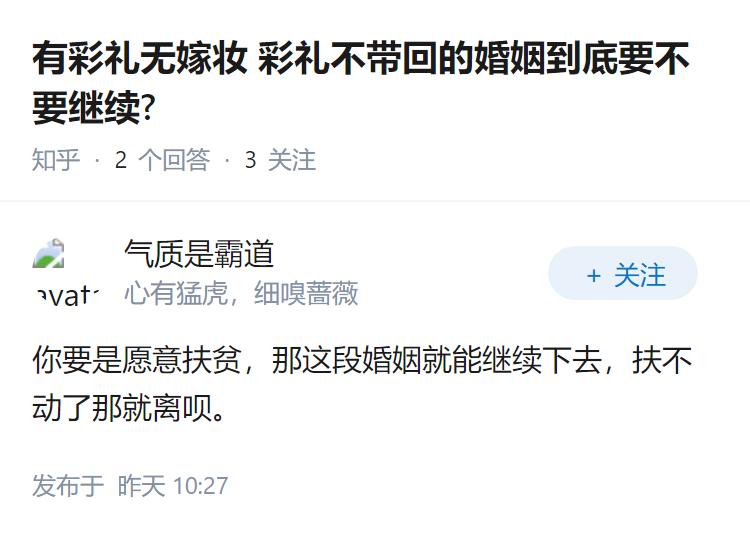 有彩礼无嫁妆 彩礼不带回的婚姻到底要不要继续?