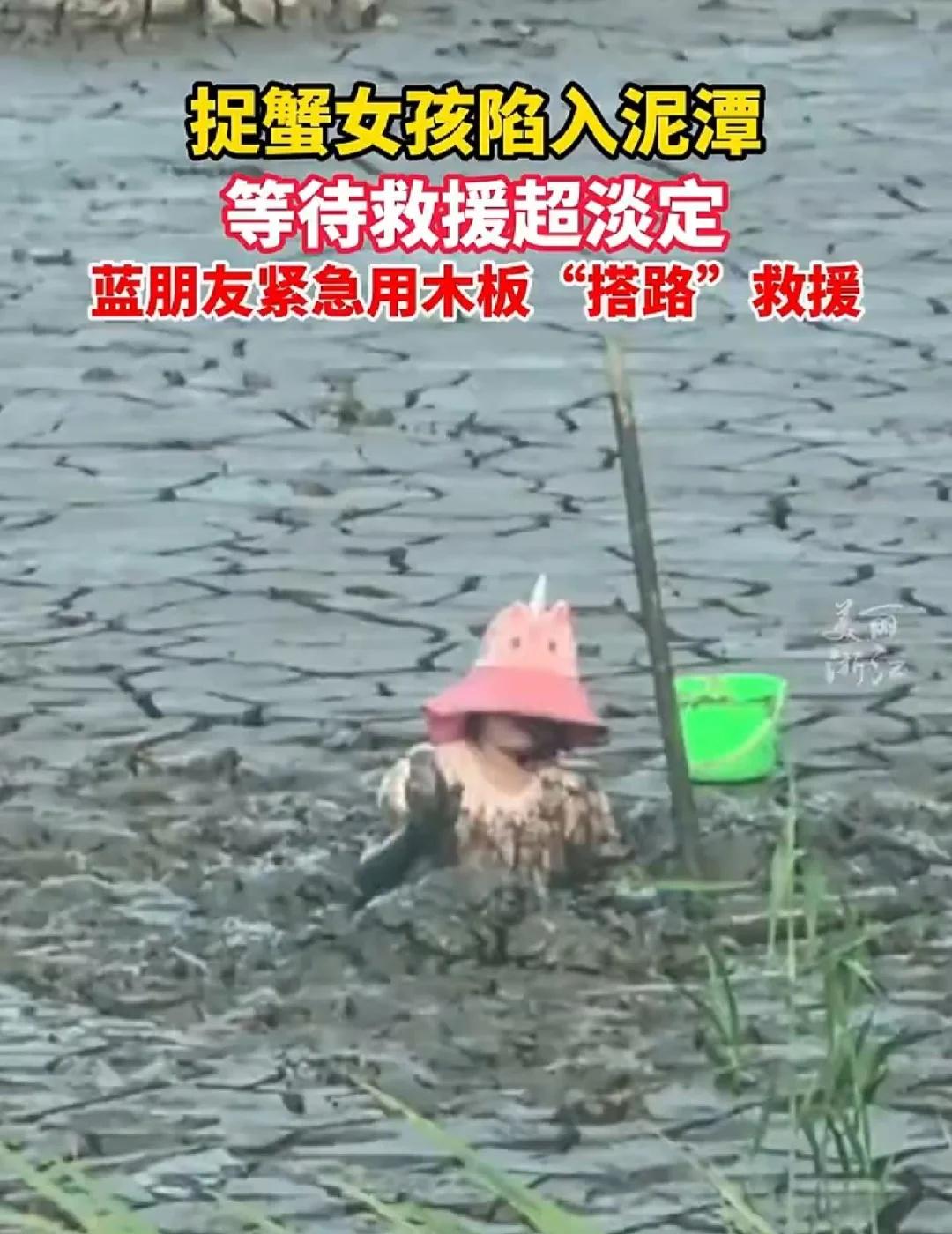 女孩捉蟹陷泥潭等待救援 获救全程超级淡定 女孩捉蟹陷泥潭等待救援 获救全程超级淡定~远离危险水域 保护水环境 救援 致敬消防员