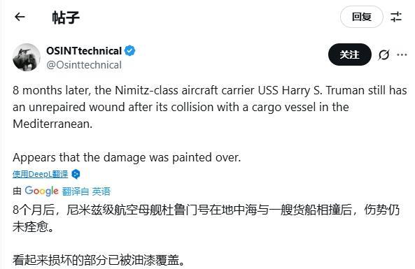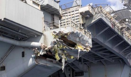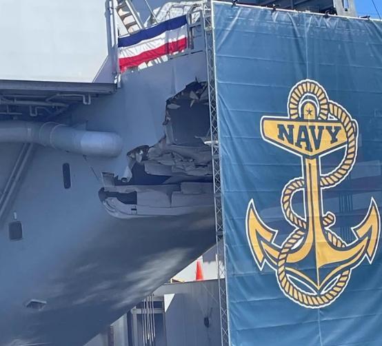 特朗普要来视察,美国海军赶紧“遮丑” 但非常离谱的是,如今8个月过去了,美国海军不仅没有修复“杜鲁门”号损坏的部分,眼看着特朗普要来视察,美国海军居然“灵机一动”,干脆用一面海军旗遮挡住“杜鲁门”号的破洞。 然而,美国海军越是想装作什么事都没发生过,反而越引起了外界的关注。 美国“海事新闻”网站对比了“杜鲁门”号的破损照片认为,自“杜鲁门”号发生事故至今,美国海军仅仅用油漆覆盖了裸露的金属结构,没有对破损部分进行任何修复。 美国海军那边的解释是,“杜鲁门”号虽然已经返回美国本土,但要想进行重大船体维修,必须回到造船厂才行,而目前“杜鲁门”号正在排队等待造船厂的大修…… 这里插句题外话。2021年美国海军“康涅狄格”号核潜艇在南海撞山后,直到2023年才排队等到进入造船厂大修的机会,本来预计是在2025年9月完成修复,但在今年7月美国海军又将“康涅狄格”号的修复时间表推迟到2026年。 所以,有“康涅狄格”号这个例子在前,也就可想而知,美国海军什么时候能修好“杜鲁门”号的破洞。