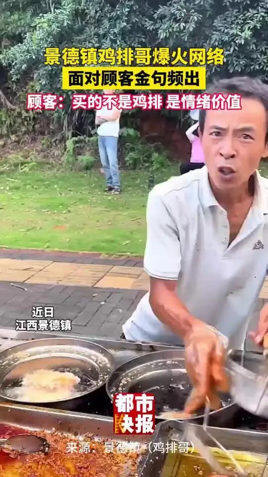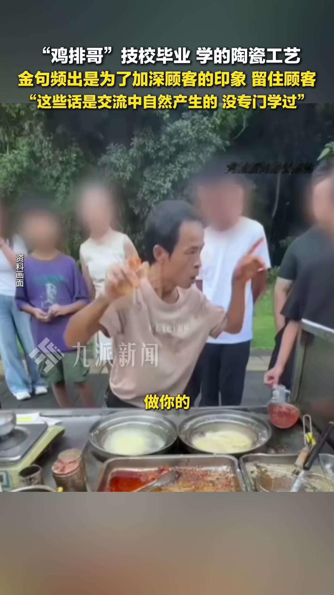 10月8日,央视《东方时空》报道的江西景德镇“鸡排哥”走红网络!他叫李俊永,48岁,原本是陶瓷厂工人,下岗后开启创业之路,最终选定了炸鸡排这一行。他的摊位紧邻学校,从一开始就推出“学生立减1元”的优惠活动,十年来鸡排售价始终维持在6元。 他时常妙语连珠,比如“要想抓住胃,先得抓住心”“炸不到位,我将无法原谅我自己”。他做鸡排时动作极为麻利,一边忙着手上的事,一边抛出金句。游客王宝华被他十年来不涨价以及幽默风趣的特点所吸引;葛先生纯粹就是欣赏他这个人;谢女士则认为他为人真诚。“鸡排哥”凭借独特的魅力,把小摊经营得有声有色。 鸡排哥 鸡排哥景德镇 景德镇鸡排哥 鸡排达人 匠人鸡排 鸡排哥 网红鸡排哥