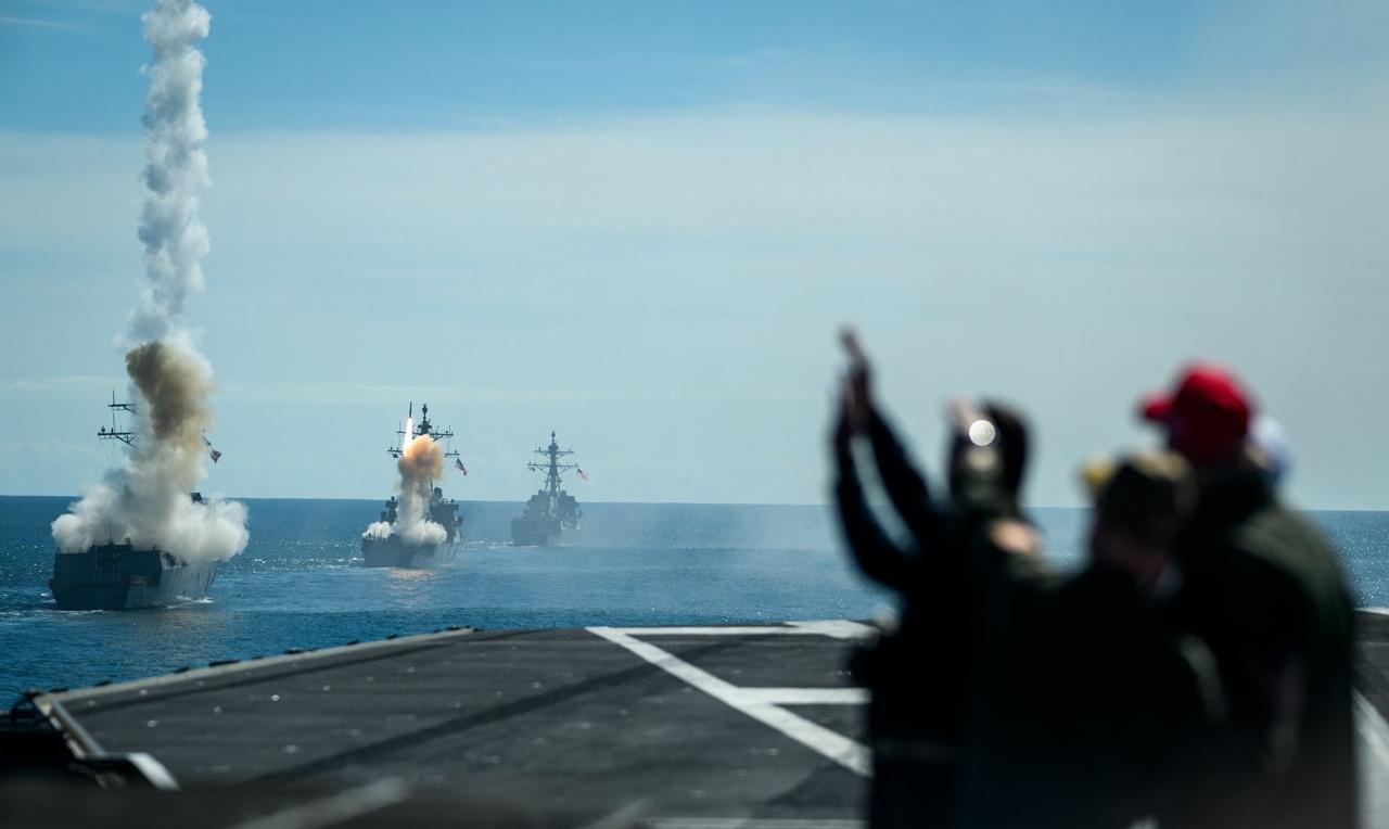 实弹测试! 美海军向特朗普总统展示了阿利伯克级导弹驱逐舰的防空火力。SM-2防空导弹是美国海军舰艇的主要防御手段。#海军##美国##美军导弹# #美国驱逐舰# #美国导弹驱逐舰# #伯克3驱逐舰#